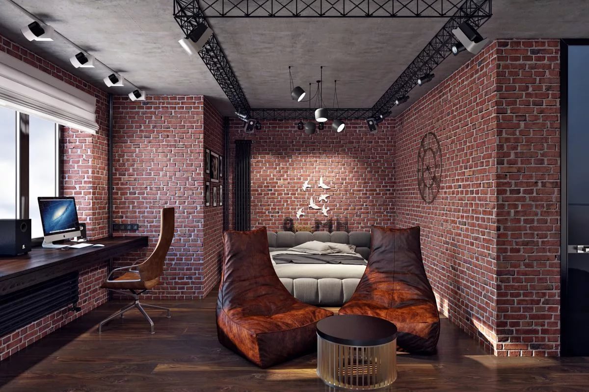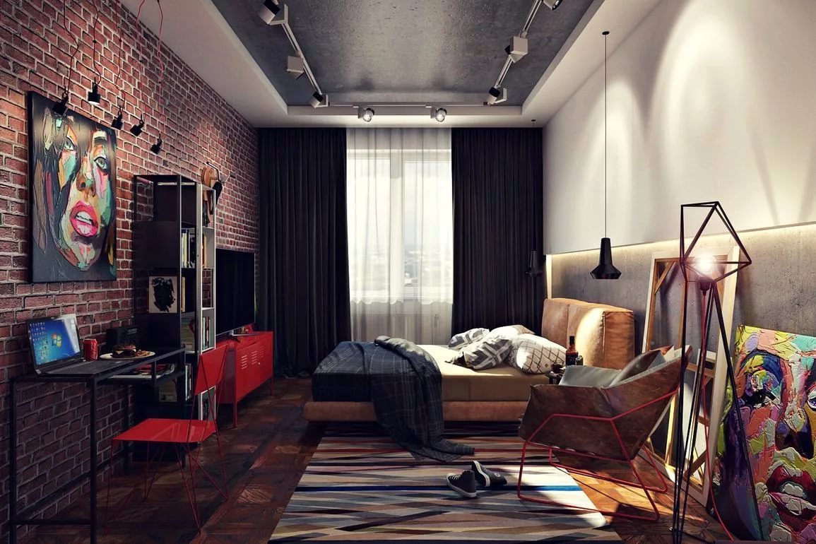 Furniture is selected from the most daring options, rough walls, the presence of wear elements. Perhaps the presence of art elements.