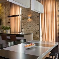 The design is similar to rolled. Roman curtains in the interior in the loft style is a unique combination of laconicism and elegance.