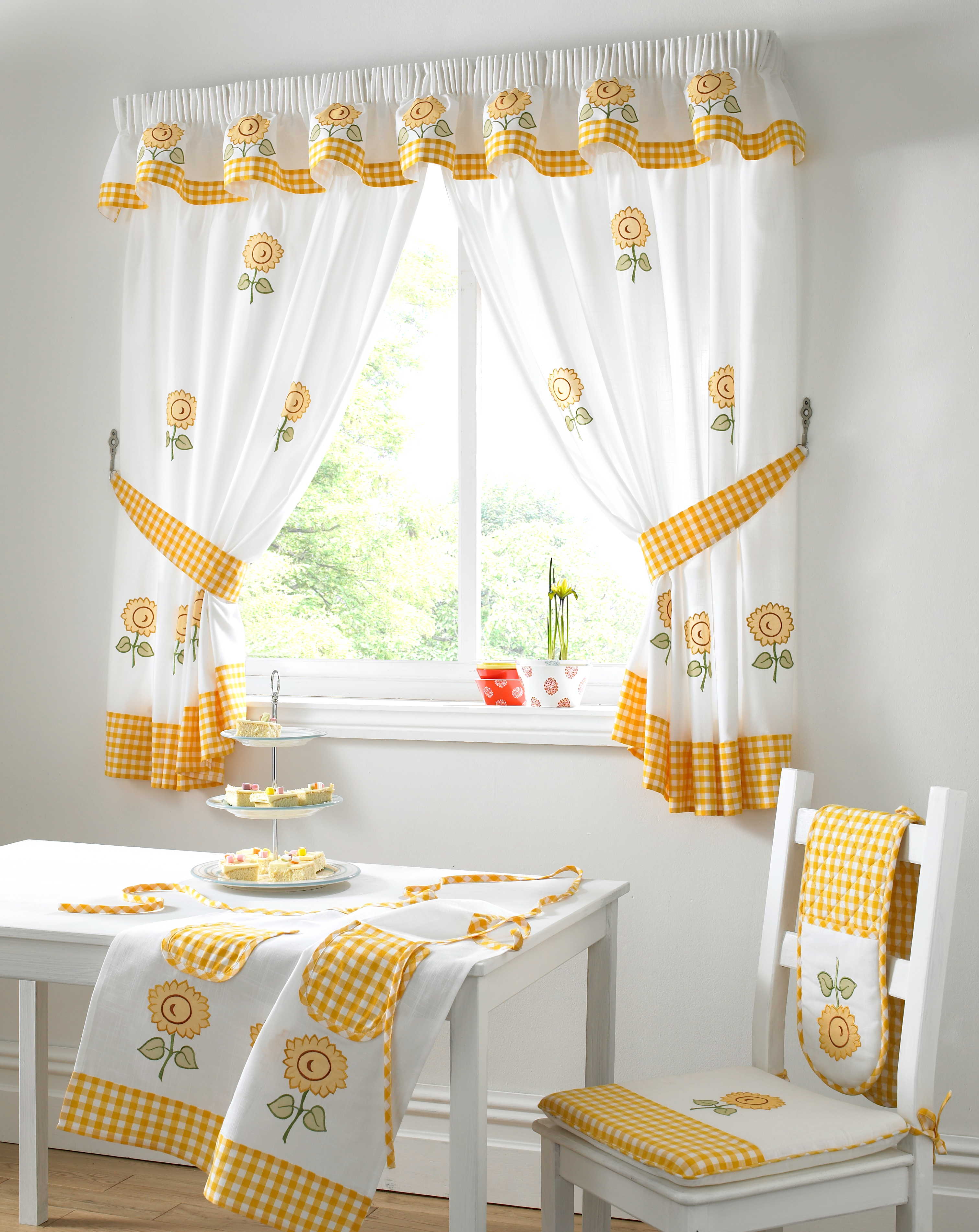 The main purpose, which have kitchen curtains in a cramped space, is to let a lot of air and light into the room. Therefore, it is better to abandon complex bizarre shapes and curtains with rich drapery.