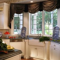 The choice of curtains depending on the style of the kitchen