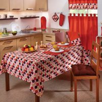 The kitchen will look harmonious if you choose a tablecloth and napkins to match the color.