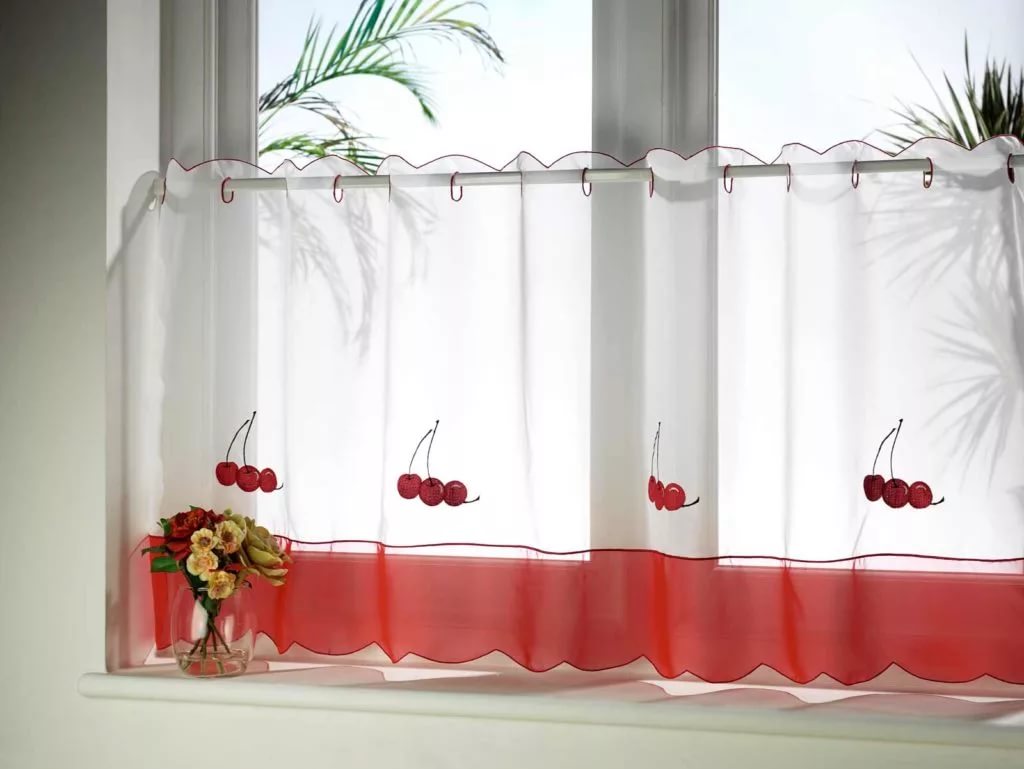 Very often the dimensions of the kitchen are small, so it is very important to choose not only a stylish option for the kitchen, but also one that will not occupy most of the space. You can choose a short version of the curtain from one or more layers of material, it all depends on your taste and preference.