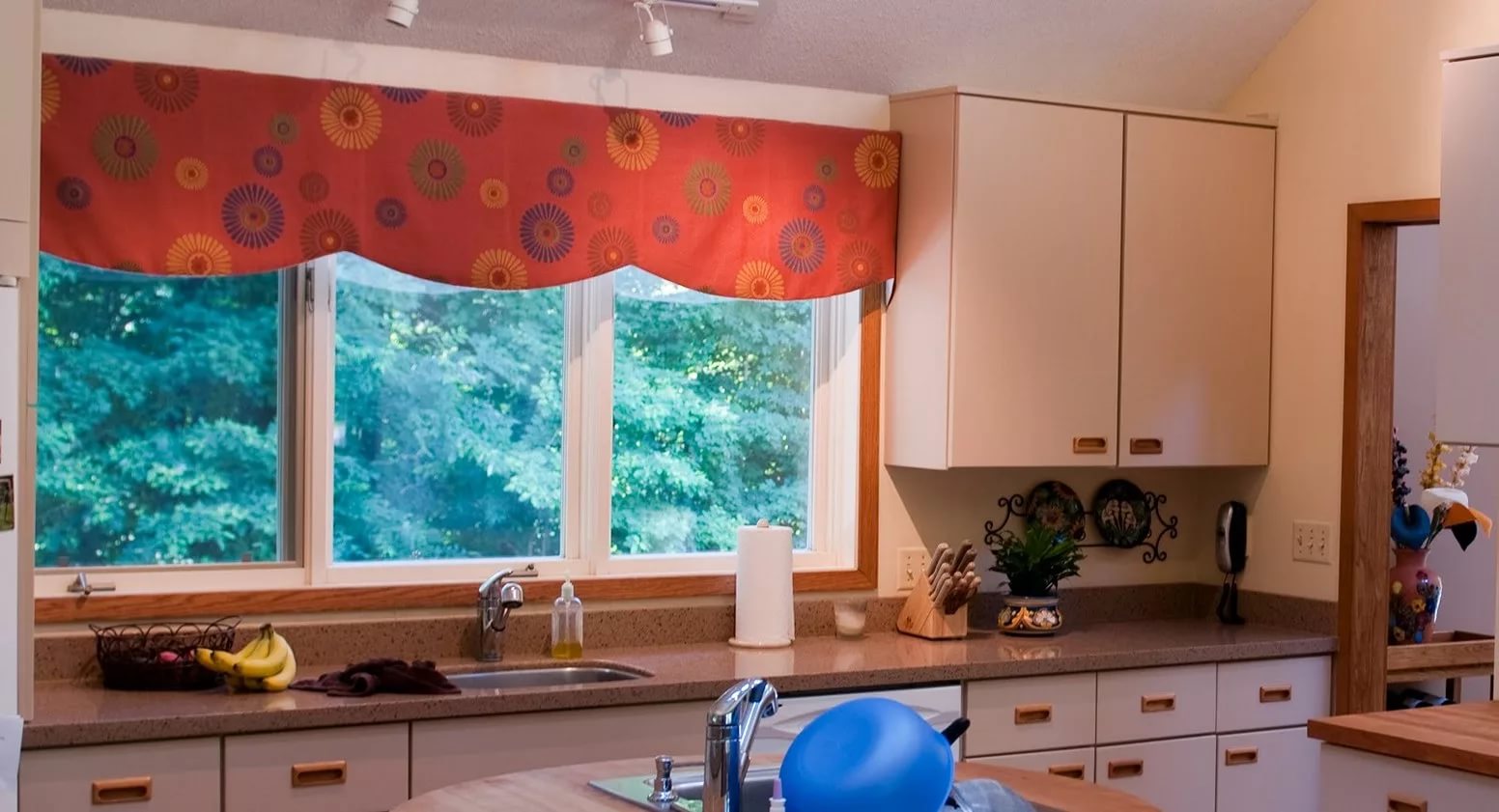 For a large kitchen, you should choose bright curtains