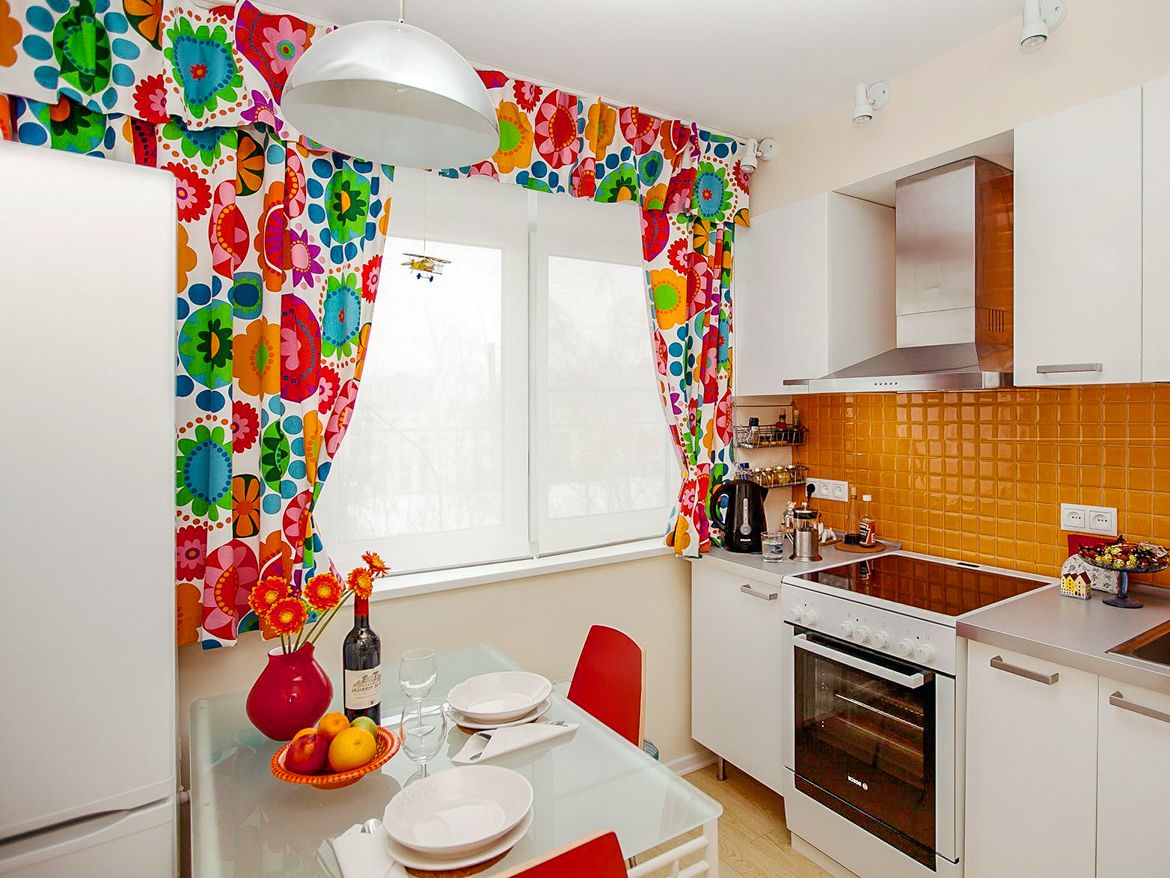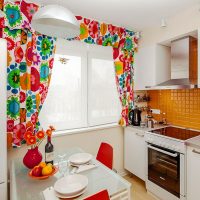 For a small kitchen, it is better to choose light curtains with a small print.
