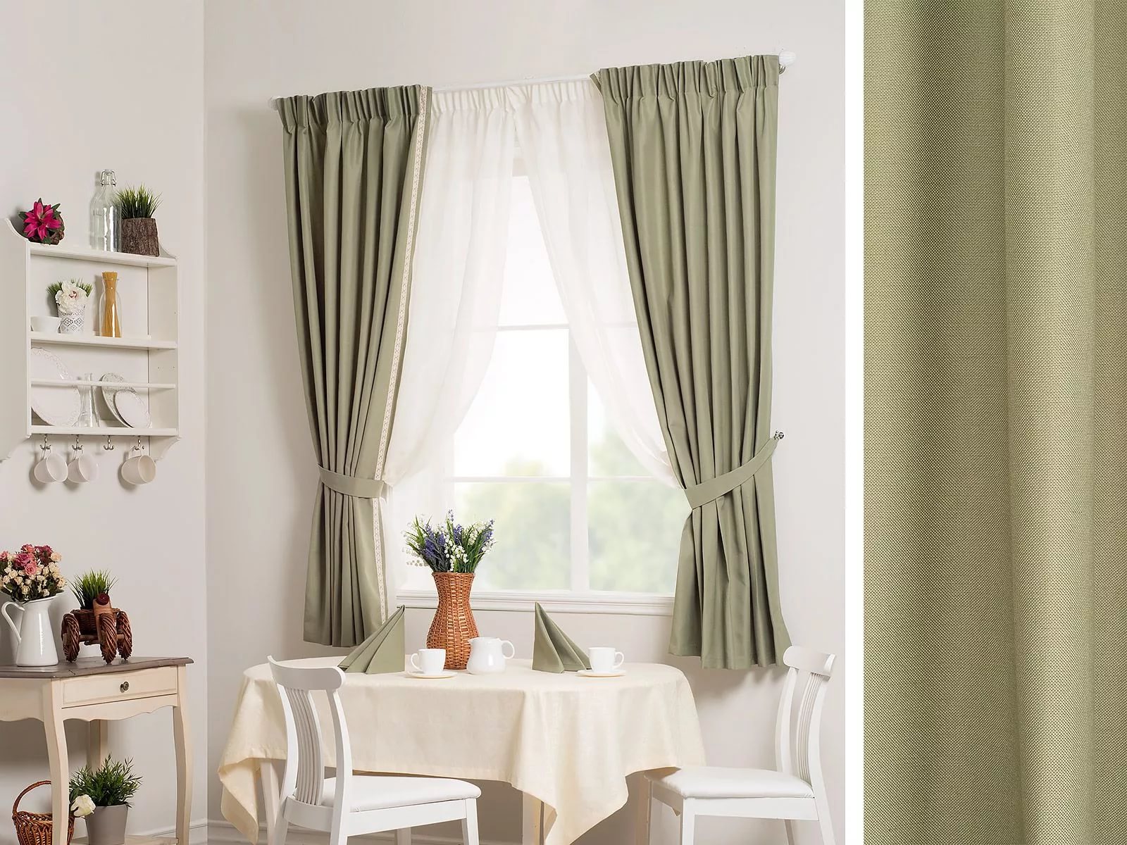 A provincial option that perfectly complements modern cuisine. The curtain rod is located in the upper part, so even when closed, the curtains will not prevent sunlight from entering.
