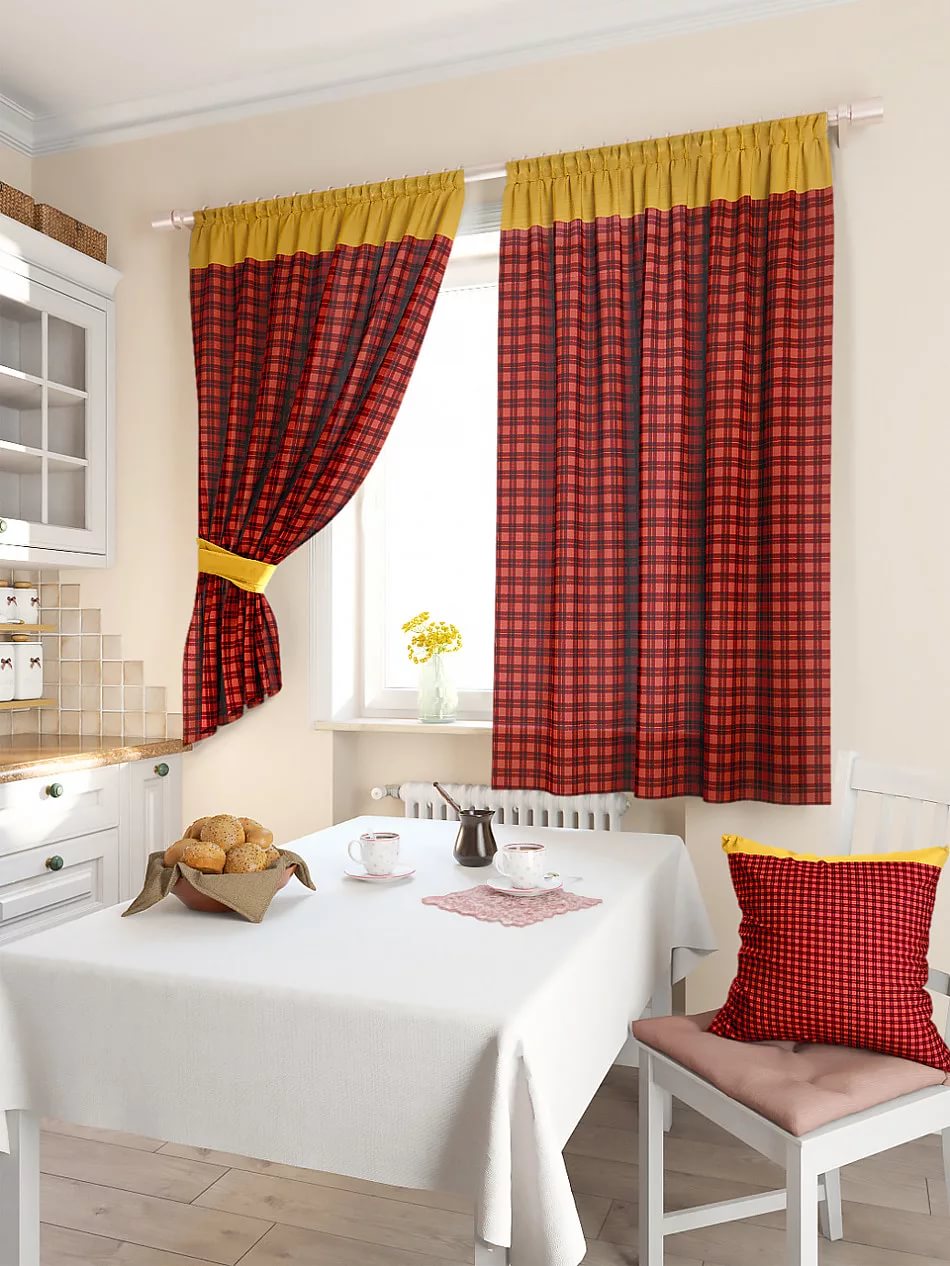 Calico curtains in the interior of the kitchen 2019