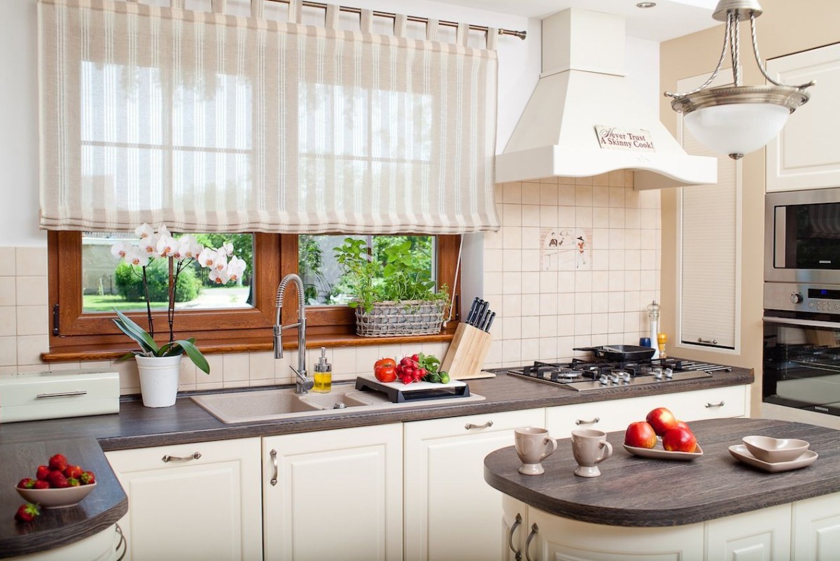 They are becoming more and more popular. They are well suited for almost any kitchen, but for a small kitchen, they will become almost indispensable. Because, for all their sophistication, they take up very little space. Perfect for a kitchen made in the style of modern, minimalism. Depending on the amount of incident light, you can choose the material of your choice, from translucent to dense. You can adjust the length of the curtains using rails.