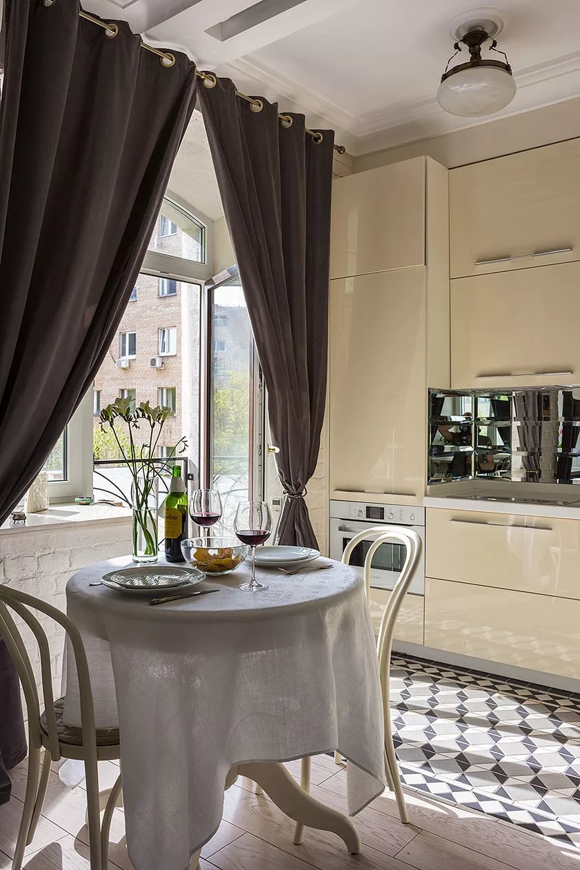 3) For a small kitchen, curtains of light color are suitable.