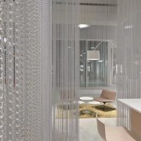 Thanks to the use of the drawstring, it turns out to completely hide the holes through which the cornice passes. An additional fabric tunnel is made inside the curtain, and a cornice passes through it. Moving the curtain aside, the residents do not hear the unpleasant creak emitted by the rings, but only the quiet rustling of the fabric.