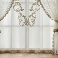 Such beauty and splendor are not hidden by rings, grommets and other accessories. This baguette hides the top edge of the curtains. You can pick up any baguette design in the Greek, Egyptian, Roman style. With the help of such an accessory only luxurious, rich interiors are created.