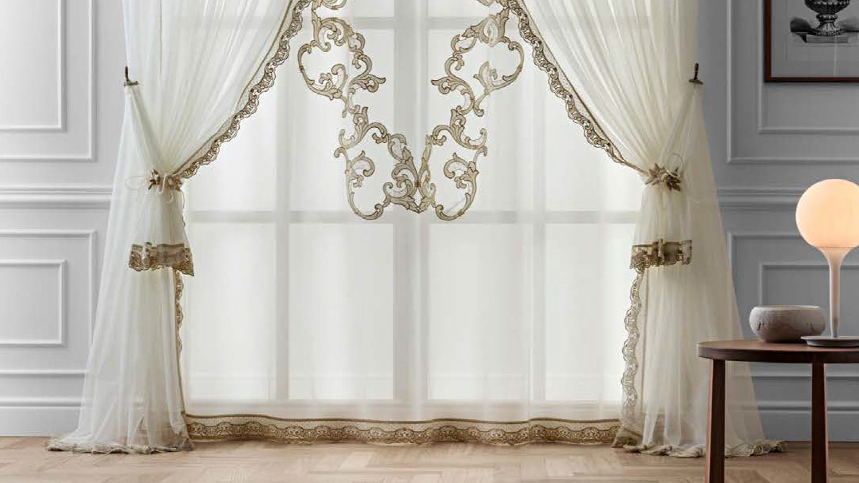 Such beauty and splendor are not hidden by rings, grommets and other accessories. This baguette hides the top edge of the curtains.