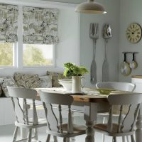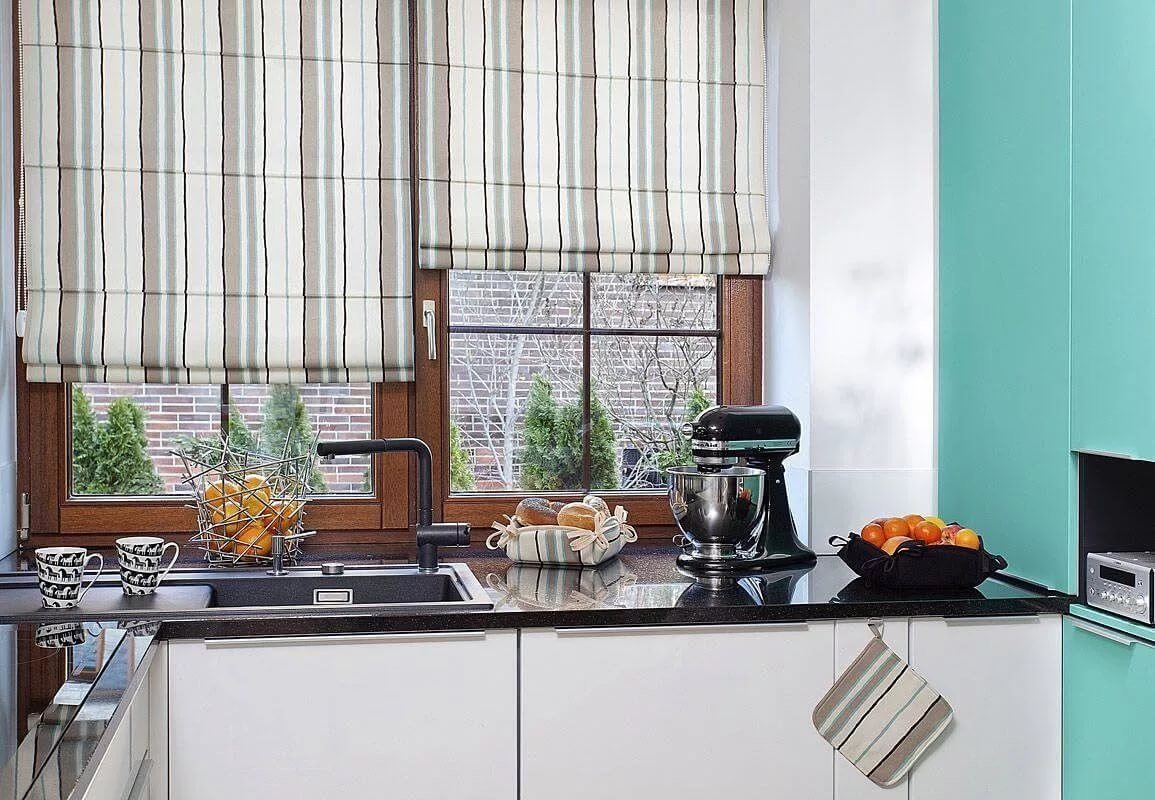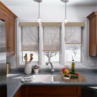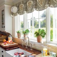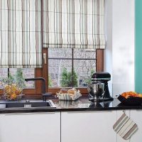 Functionality requires short curtains that will not take up space and interfere with moving around the kitchen. Therefore, curtains are ideally suited just above or below the window sill line, ideally if it is blinds or blinds.