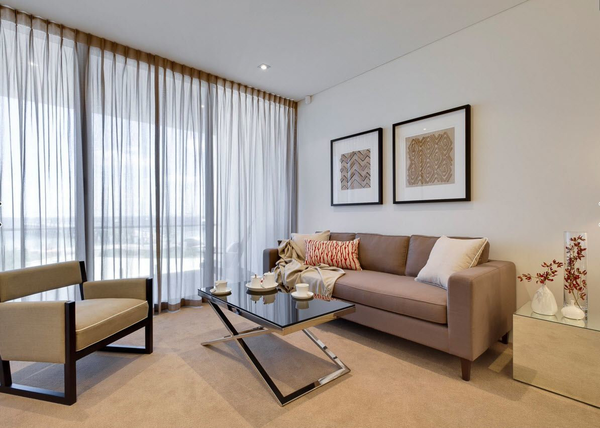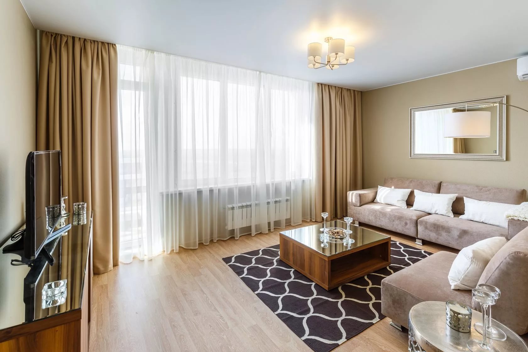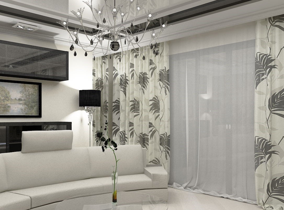 It is advisable to decorate the living room. Curtains here play exactly a decorative role, do not carry a functional load. However, if you combine the hall with a home theater, then it is advisable to hang a canvas that can hide daylight.