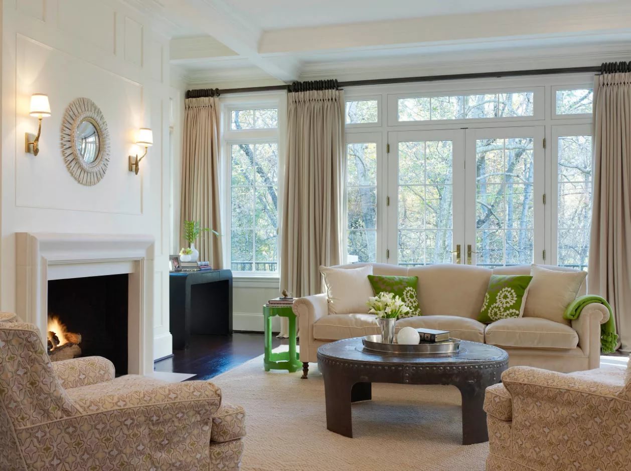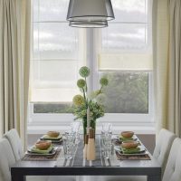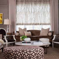 Among the materials, naturalness is popular. If the curtains are made of fabric, then select linen, bleach, chintz, silk and other fabrics made from natural fibers. If you choose blinds, then blinds from bamboo and different types of wood look very beautiful. This option looks much more luxurious than plastic imitating wood.