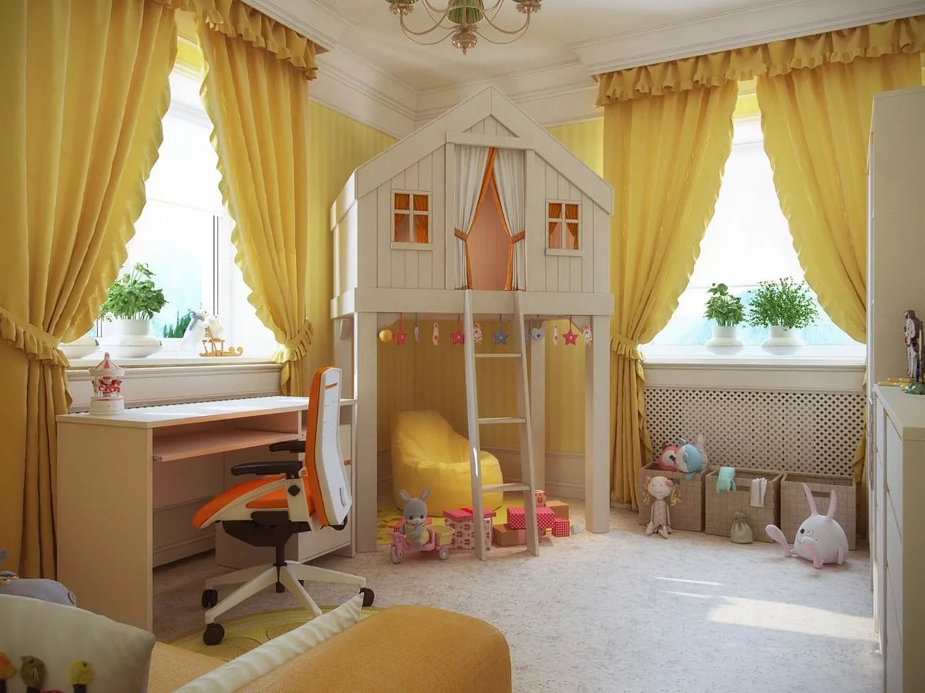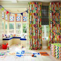 As in the bedroom, it is important to provide the baby with the opportunity to sleep in daylight. If the child is small, and he needs a day's sleep, then it is advisable to choose a dense tissue.