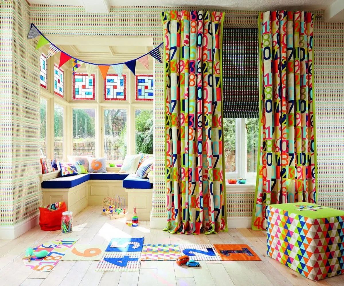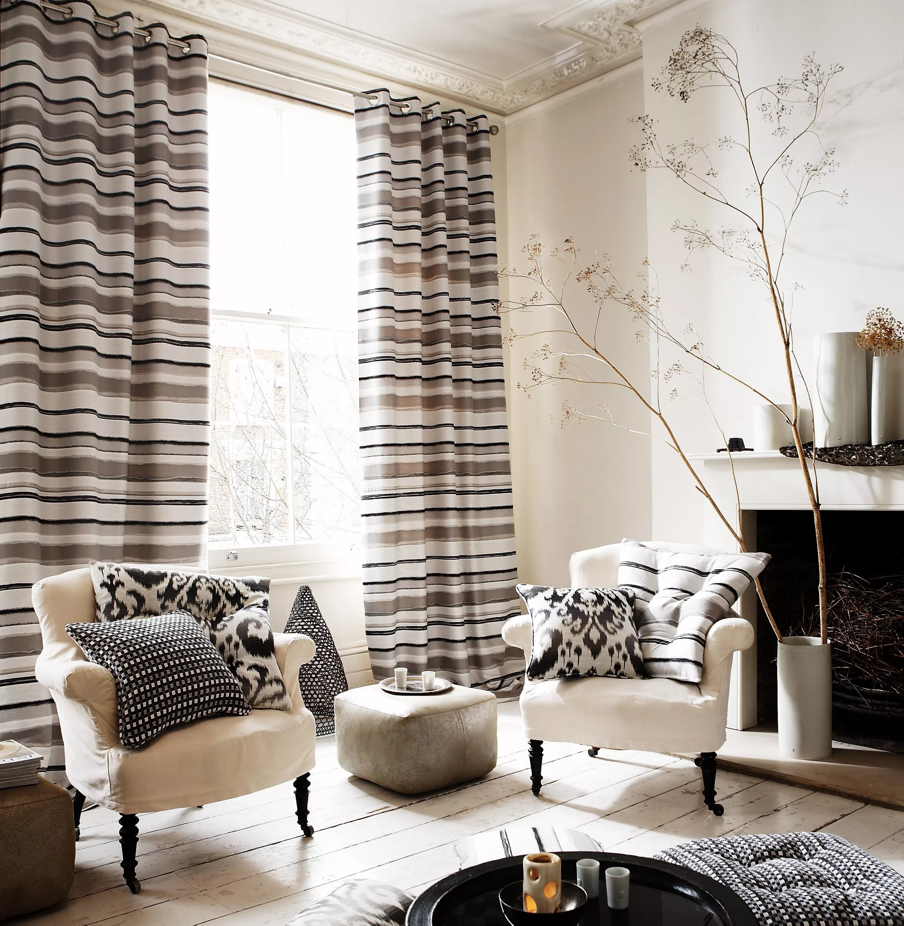 Curtains with geometry can visually expand or narrow your room. Be careful when choosing them.