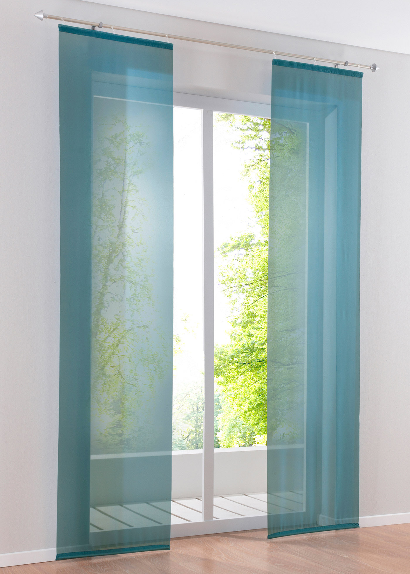 - Cafe style - when ordinary sliding curtains complement a strip of fabric horizontally.