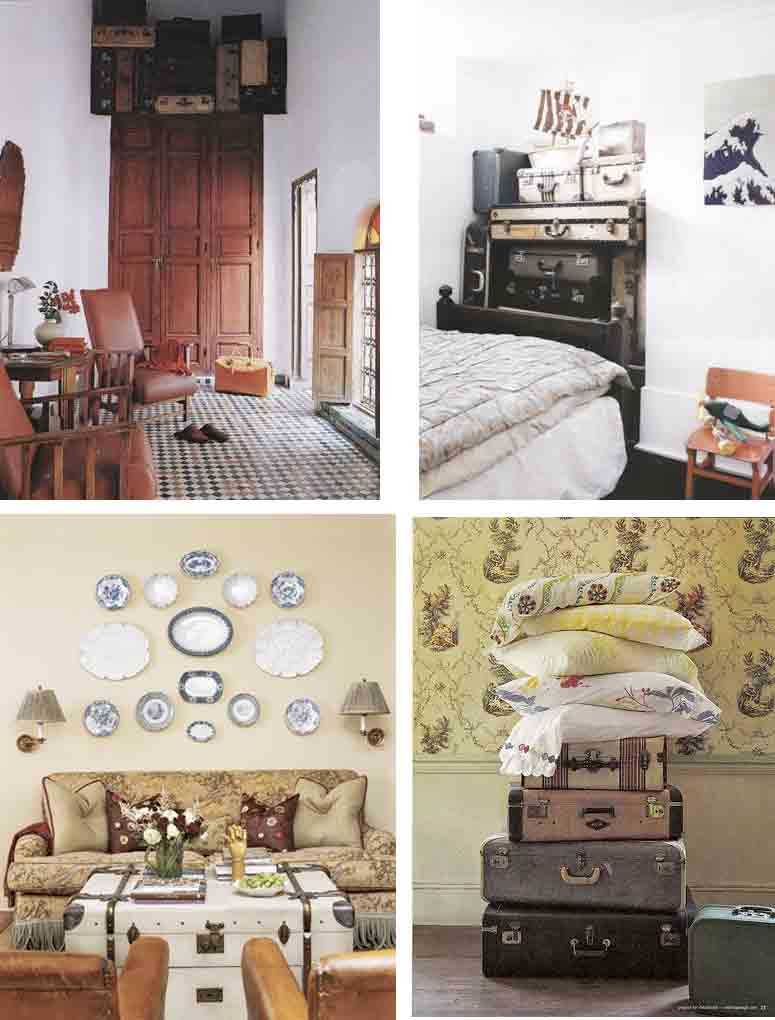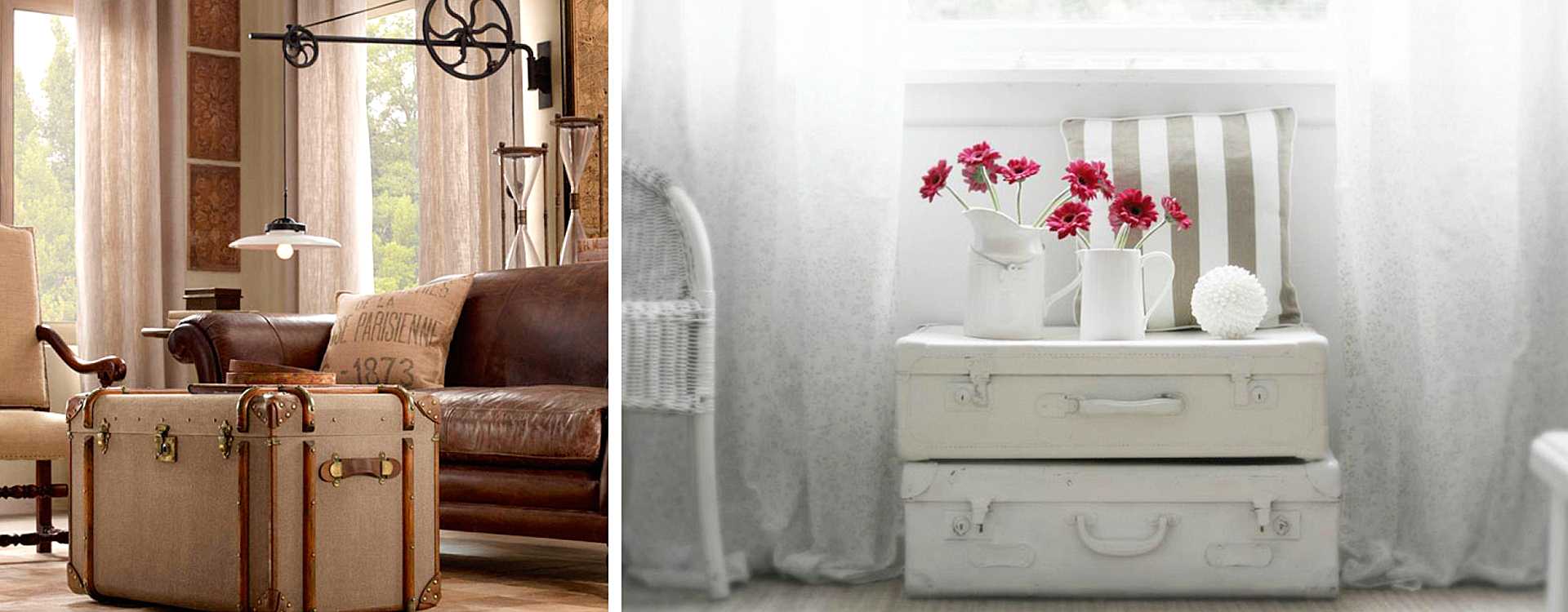 Large suitcases in the interior can play the role of a vintage chest of drawers. And if you put plants in it, it will be an original flower bed.