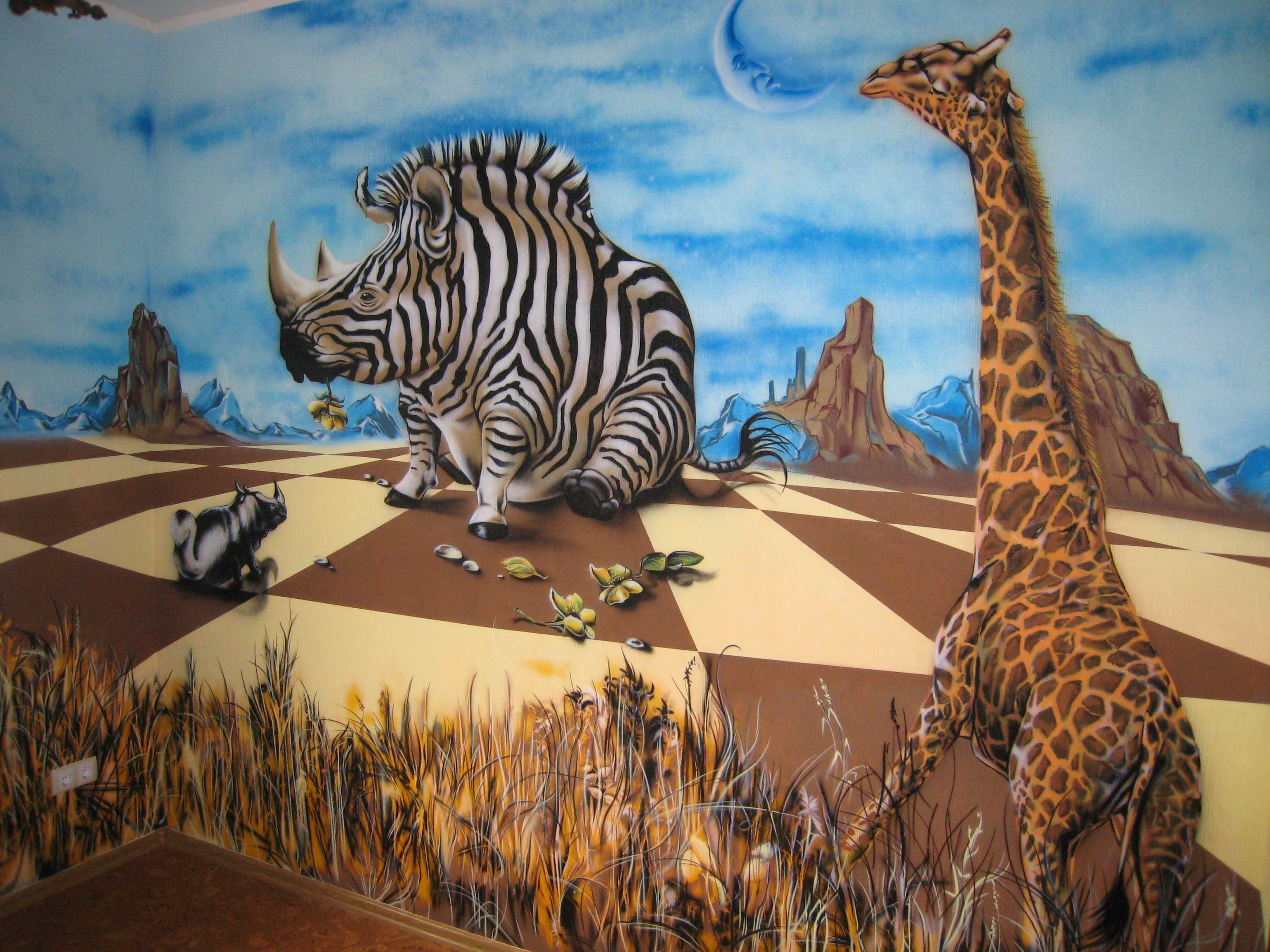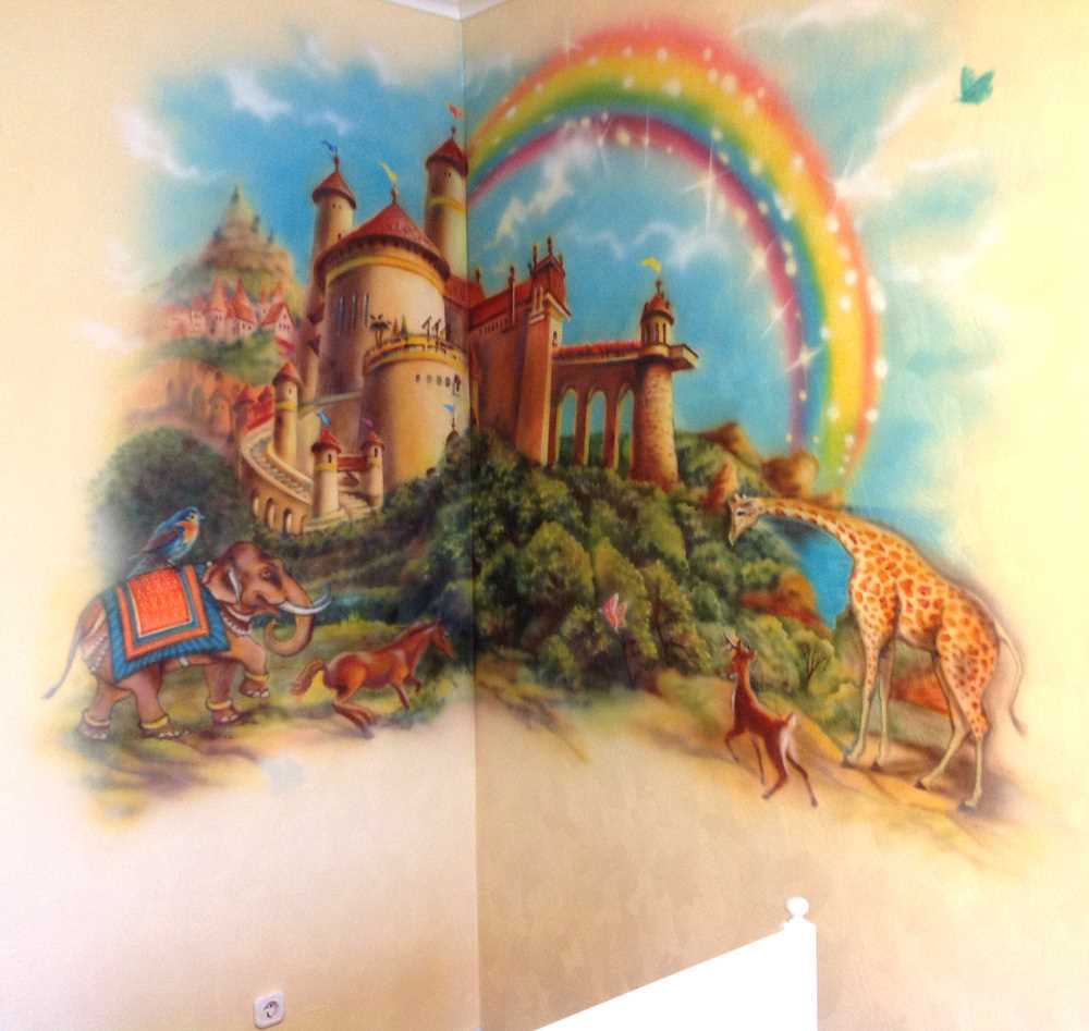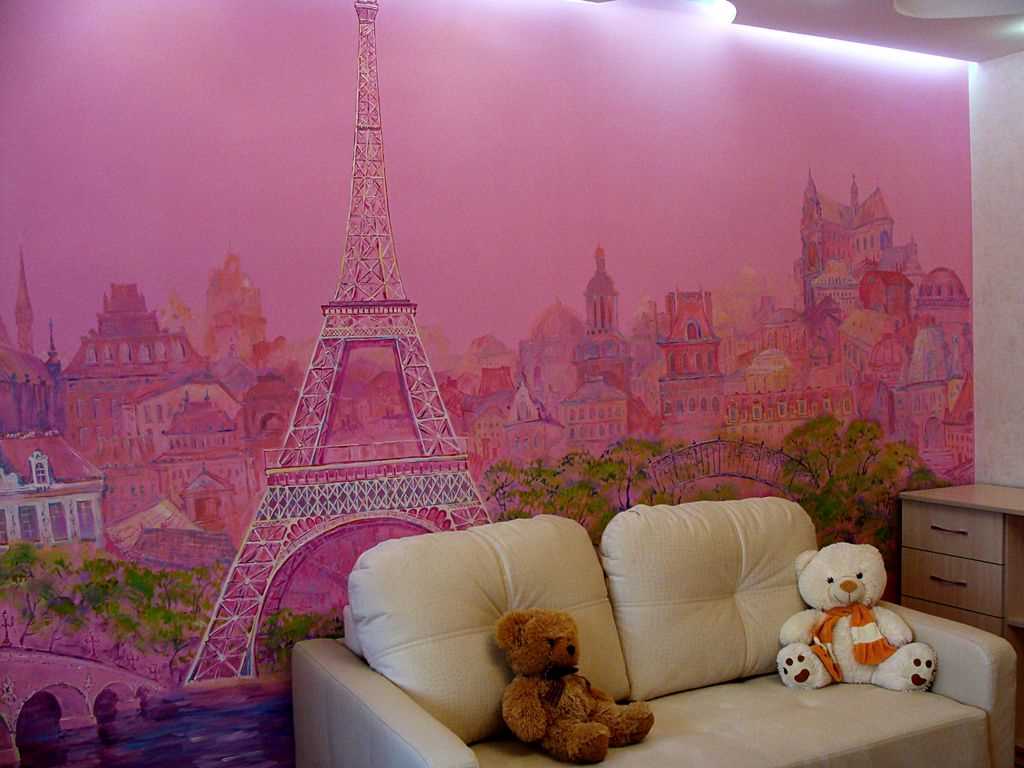From a psychological point of view, aggressive images and flashy colors should not be used for wall painting in a children's room. Here you can use: