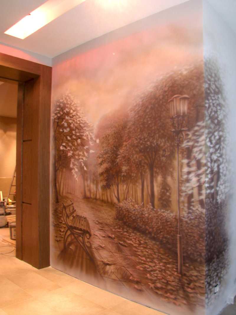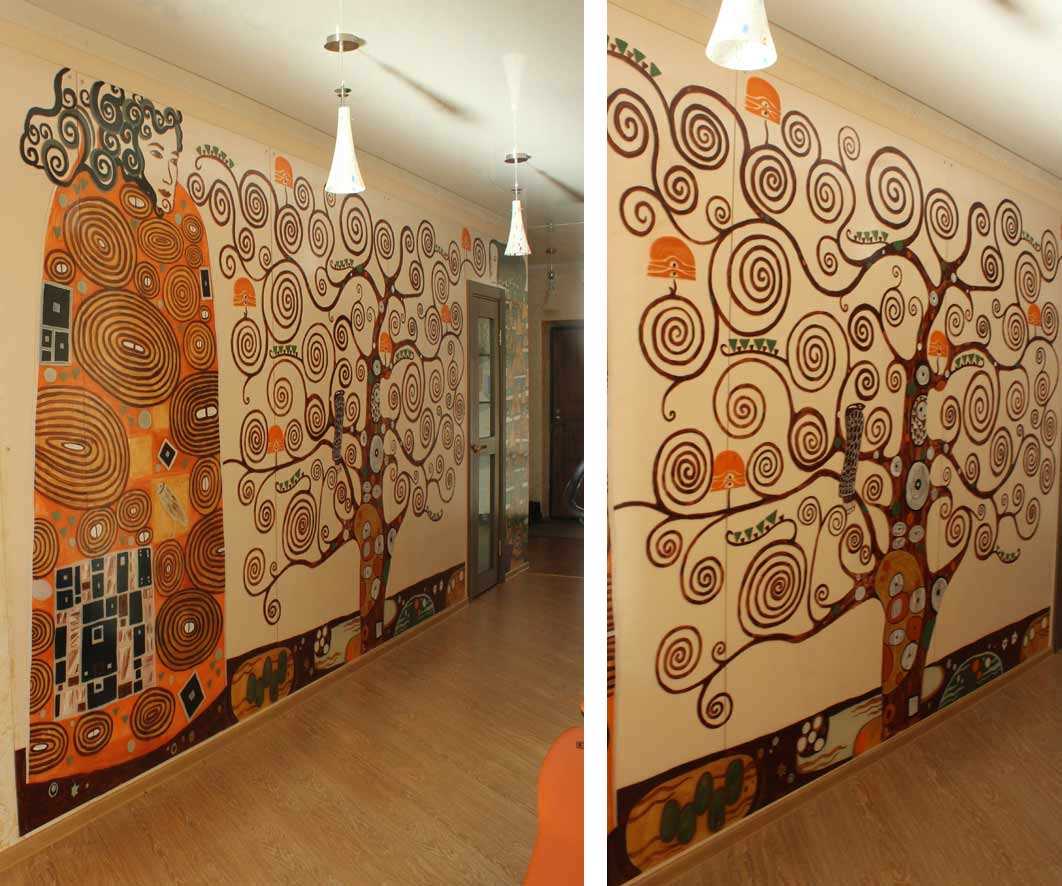 Art painting of walls in the interior is a central element of decor. She catches the eye, depending on the viewing angle, lighting, can change, playing with new colors.