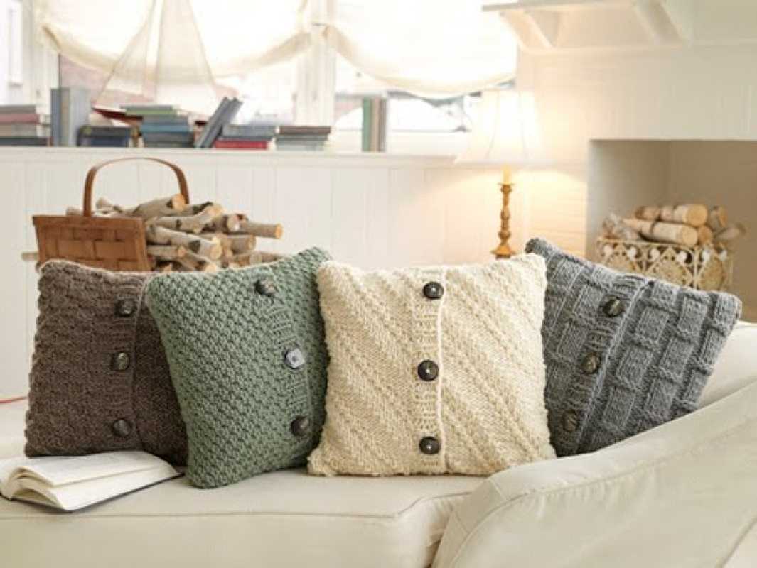 A knitted cover for armchairs and sofas will turn old furniture into an ultramodern designer sofa - it can be done in any style: large knitting is suitable for a loft, eco-style, a plaid of delicate shades casually thrown on a chair will complement shabby chic or provence, and blue and white, like a vest, gamma fits perfectly into the Mediterranean style.