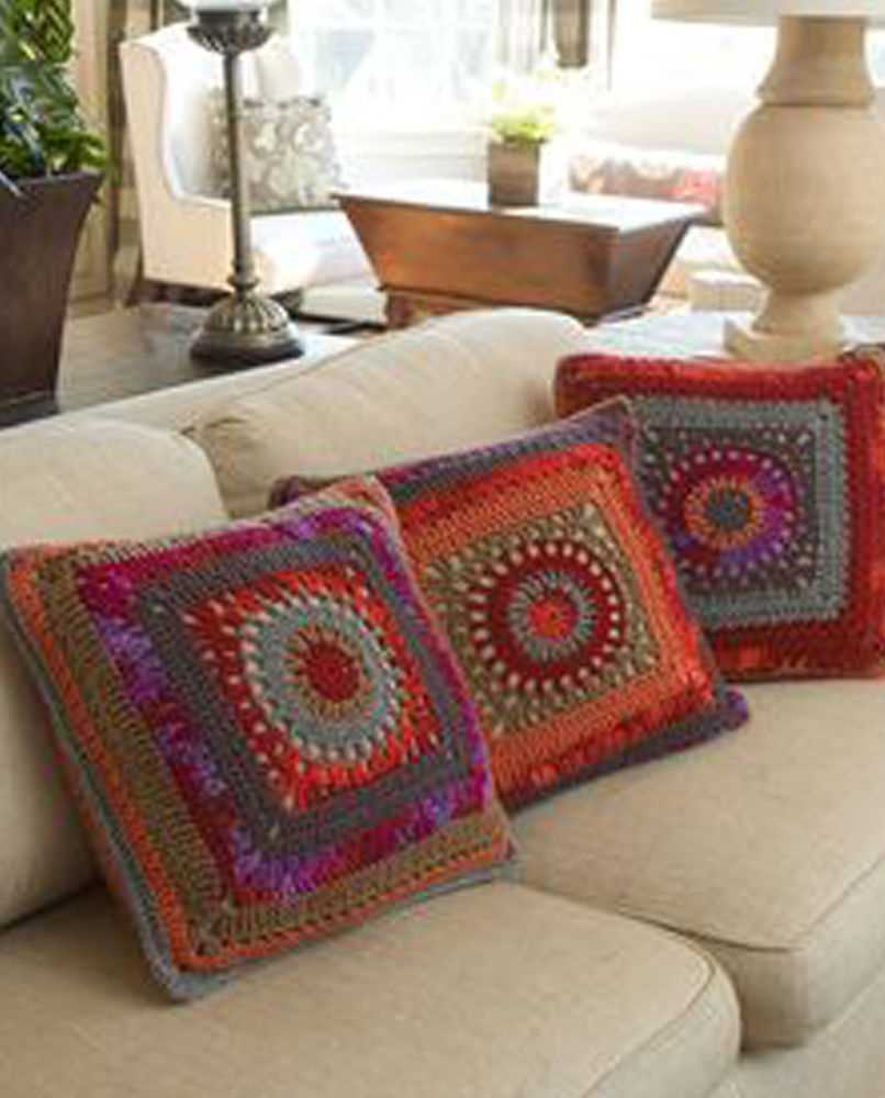 Hook and thick yarn, ideas from designers allow you to create unusual furniture, pillows, carpets. Modern knitting techniques have come up with the use of hands instead of a hook - using the yubiami technique, you can do things of especially large knitting - plaids and bedspreads.