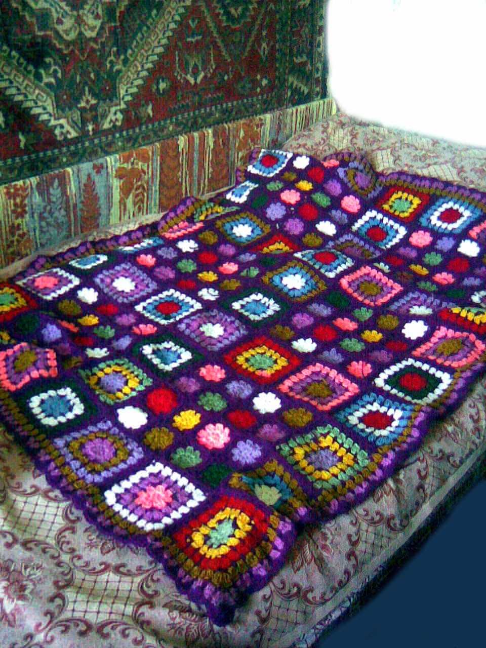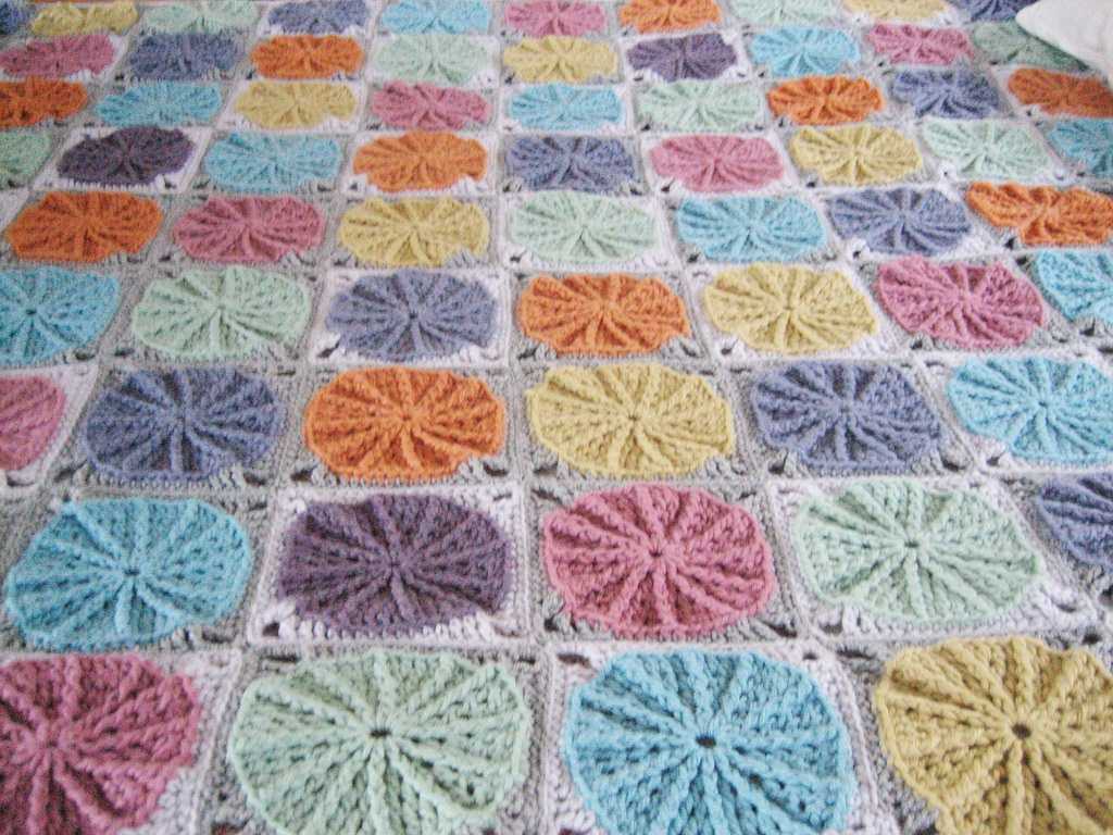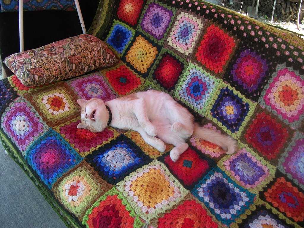 Throws, bedspreads made of separate elements - square or hexagonal - look especially impressive. It will take several evenings to tie a lot of squares, but the cries of friends: “Wow! Is it you yourself? ”- you are guaranteed. The technique of knitting "grandmother's squares" is simple. Yarn, a little perseverance - and the stylish plaid is ready. Multi-colored motifs “African flower” look even more interesting. Having mastered the technique, you can create unusual patterns using the selection of multi-colored yarn.