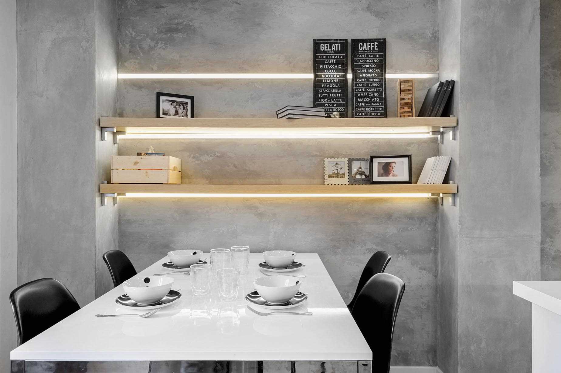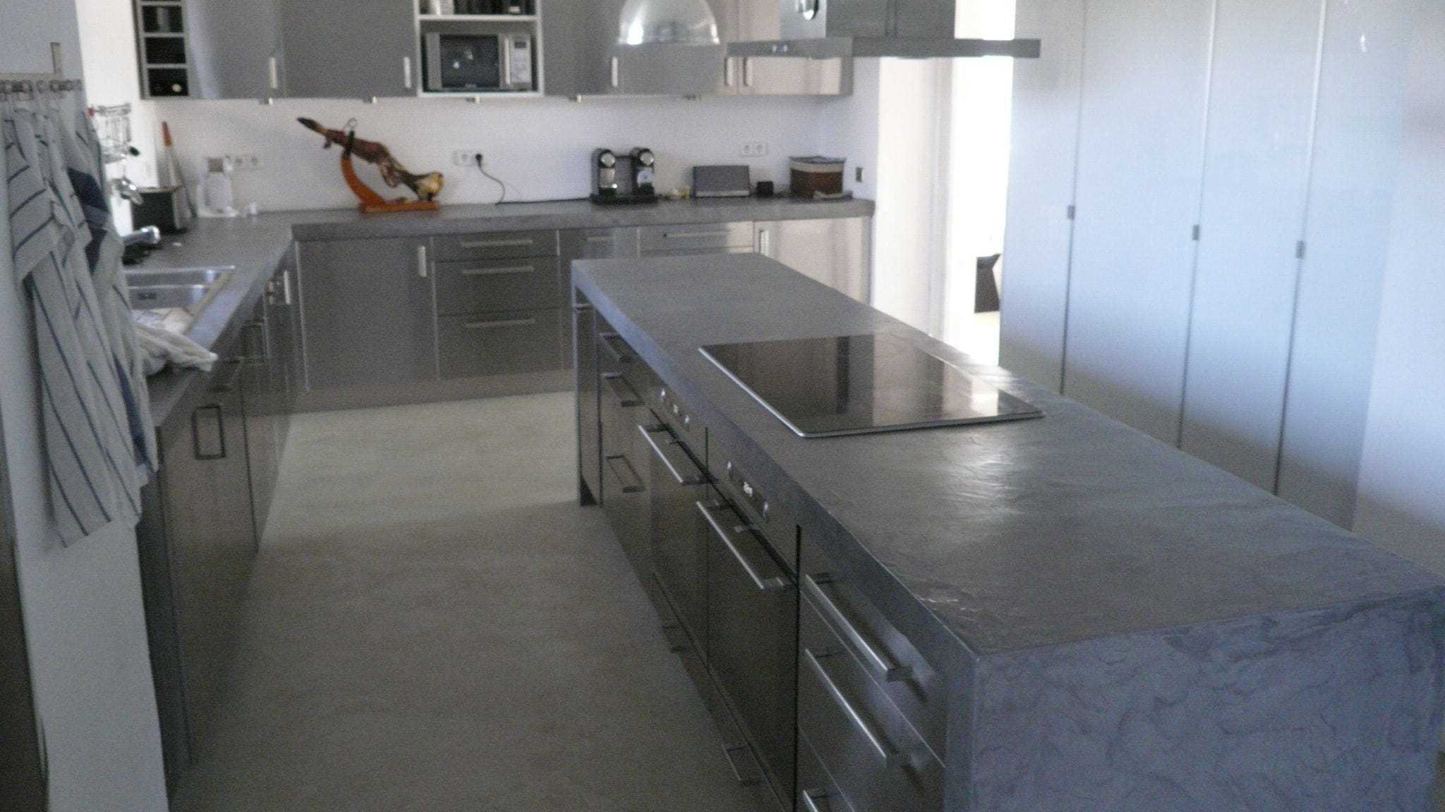 - Application by technology "smooth concrete". First you need to prepare the surface for applying the solution. This method will require a steel trowel, sponge and grinder with a suitable nozzle for concrete. The first stage includes the application of decorative plaster in a fairly dense layer, with small strokes distributed in different directions. This is done to get a natural effect. After a day, the most convex parts must be wiped with sandpaper and, if desired, the walls are treated with the sharp part of the trowel to correct the resulting pattern. The finish layer involves stretching the plaster over the entire surface. It is very important that the layer is thin enough. Therefore, the composition is recommended to be slightly diluted with water (not more than 2% of the amount of solution). After 12 hours, polishing is carried out and, if wall tinting is required. The final stage: the surface is processed by a grinder and wax.