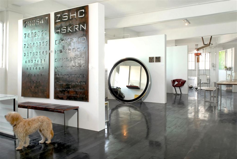 The second option is focusing attention. With the help of a mirror floor, you can easily select any zone or object in the room. Simply trim a certain section of the floor in this way and place the desired item on top.
