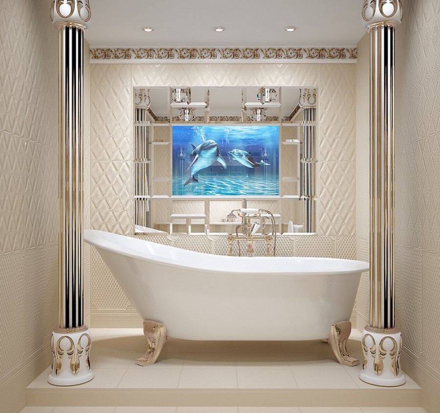 | A bathroom | It looks spectacular. You can not be limited to a small territory of distribution. Consider that hot water provokes fogging of mirrors. |