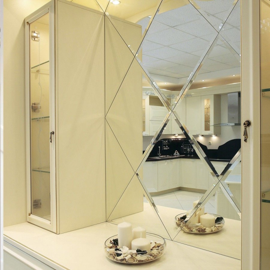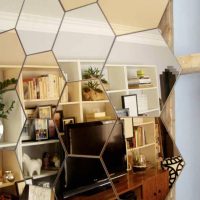 Mirror tiles in the interior can be presented in various variations. It differs in shape, dimensions, processing and installation method. Ready-made panels or piece parts for creating an independent picture are presented. Processing of elements is carried out by grinding, facet and polishing. The last option gives style details. Grind budget options. Facet is necessary to give volume.