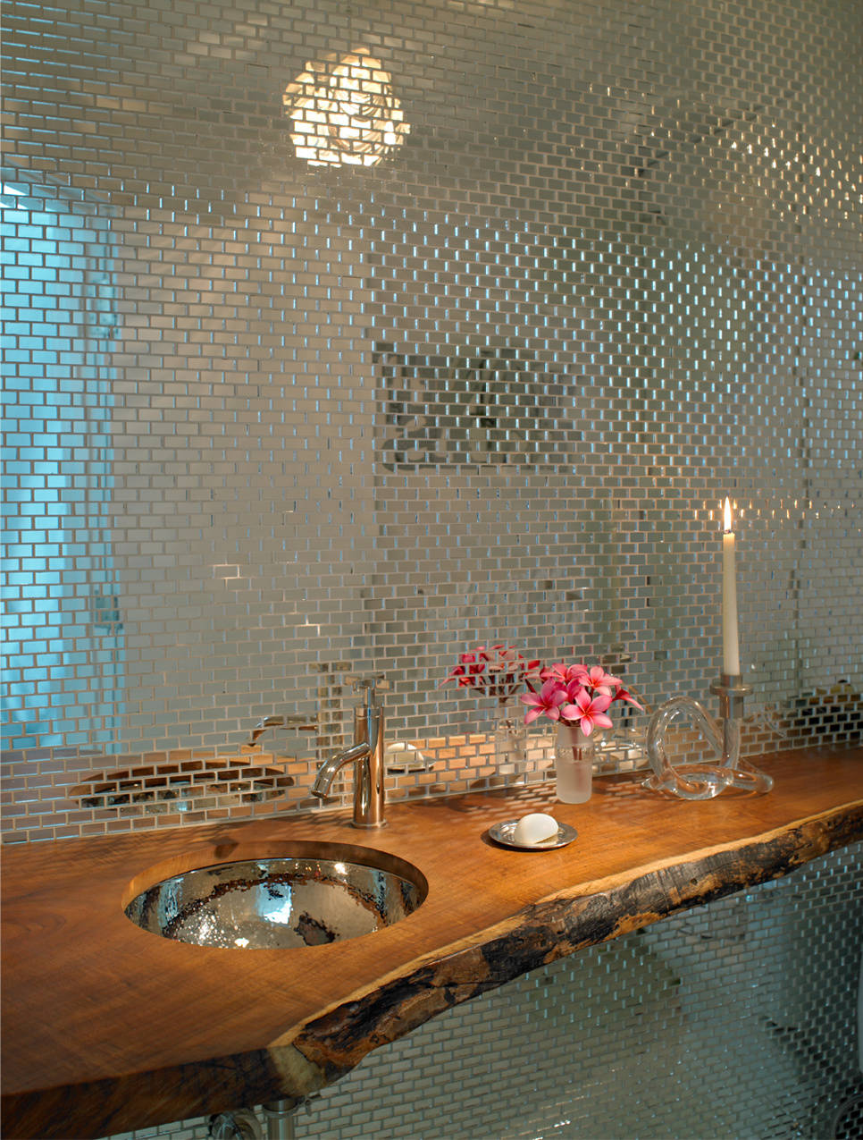 Modern technology allows you to create new, unique details for the design. They give the room a highlight and correct the imperfections of the territory. Mirror tiles in the interior is one such element. Reflection of light allows you to visually enlarge the room, increases lighting. Such material is able to radically and positively transform space.