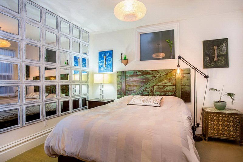 In the bedroom, the wall at the head is ideal for a mirror surface