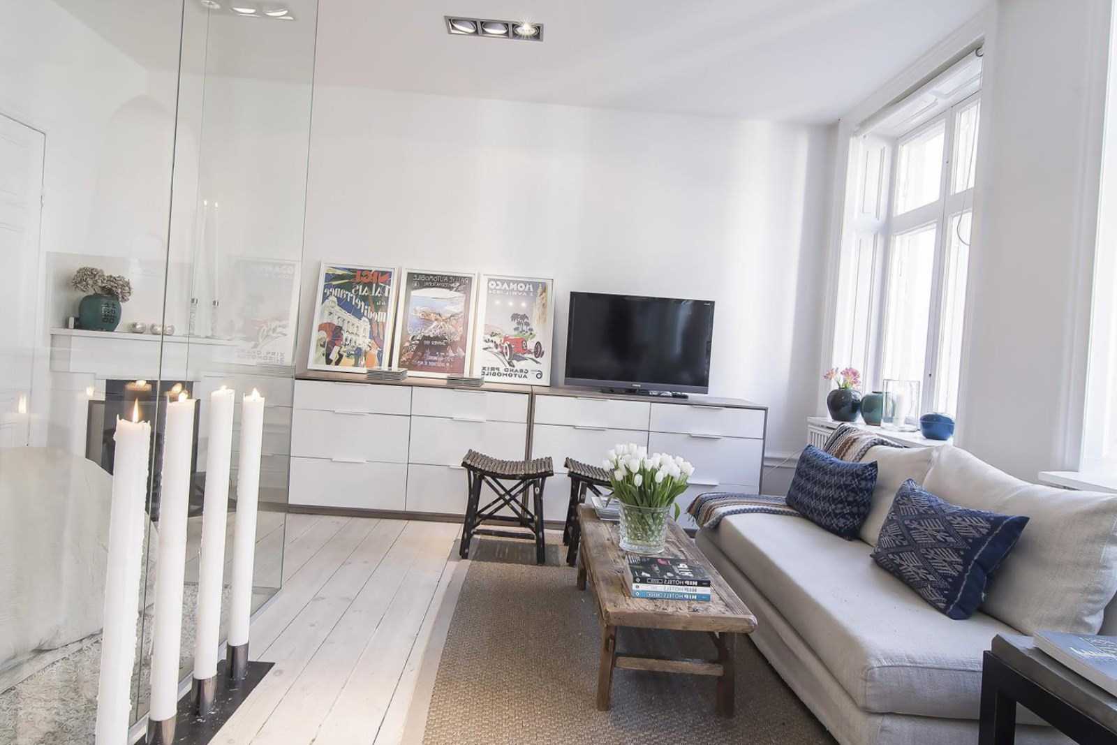 - The main principle in organizing the Scandinavian interior in a small apartment is the thoughtful functionality of the room.