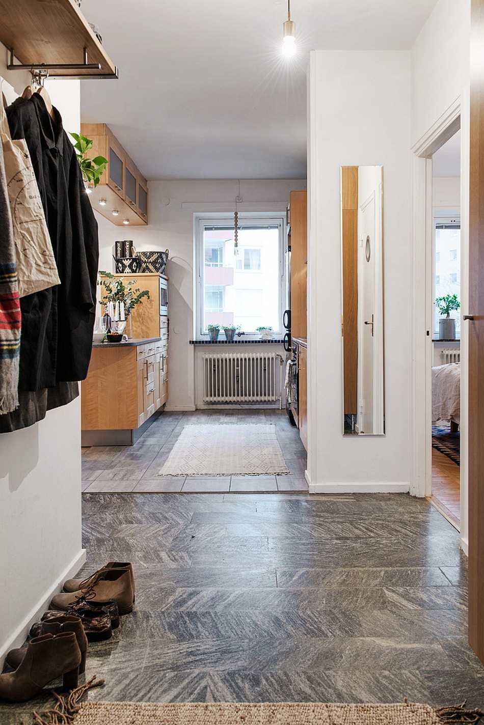 The theater begins with a coat rack, and the apartment has a hallway. The entrance hall should be comfortable and fully functional. It is advisable to use small hanging cabinets and shelves that occupy a minimum of space and do not clutter up the space.