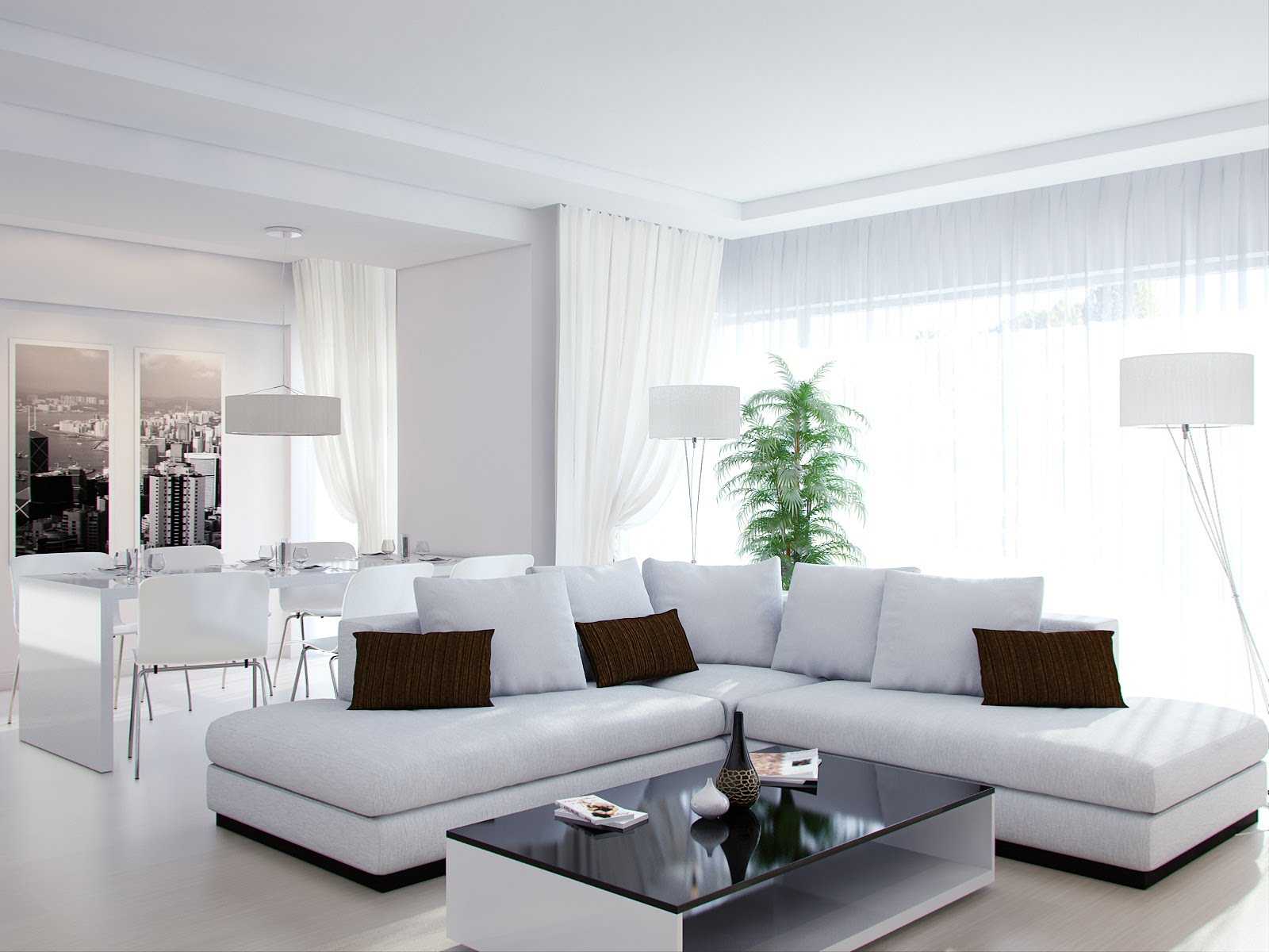 Bright living room design with white walls