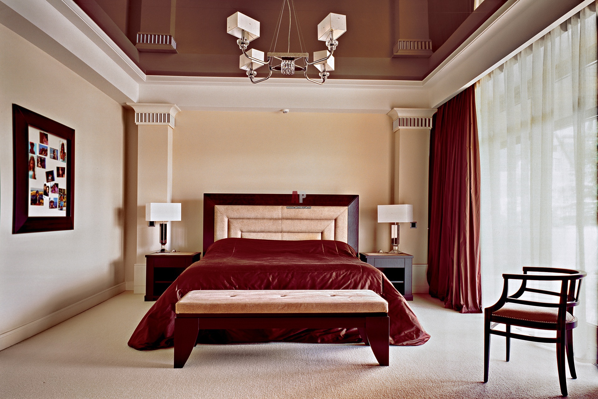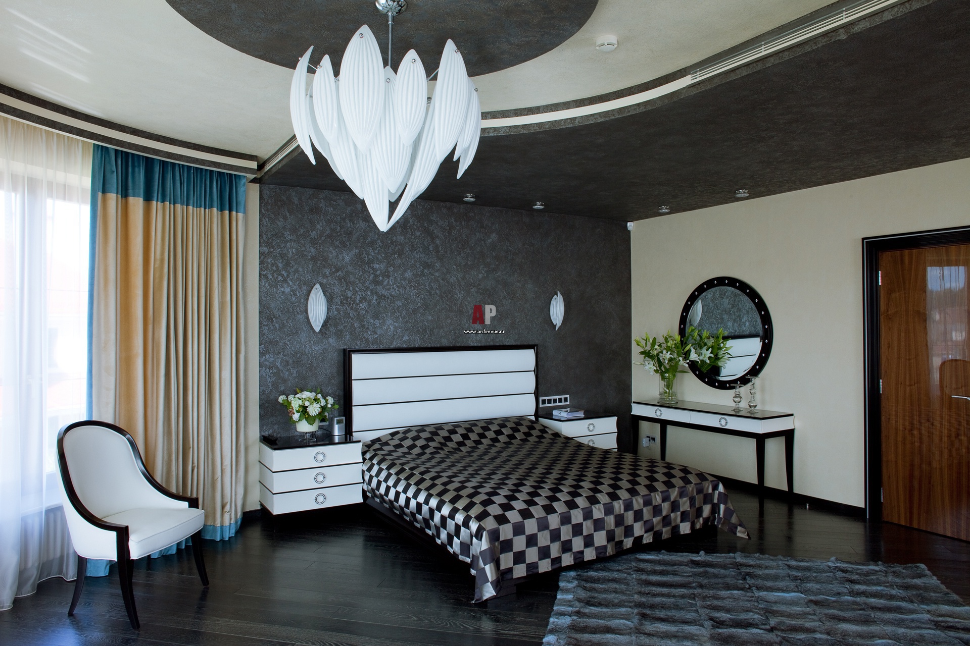 With all the luxuries inherent in Art Deco, the interior has simple forms of furniture. The central piece of furniture in the bedroom is a comfortable bed with a high headboard, often of a trapezoidal shape, with chrome legs.