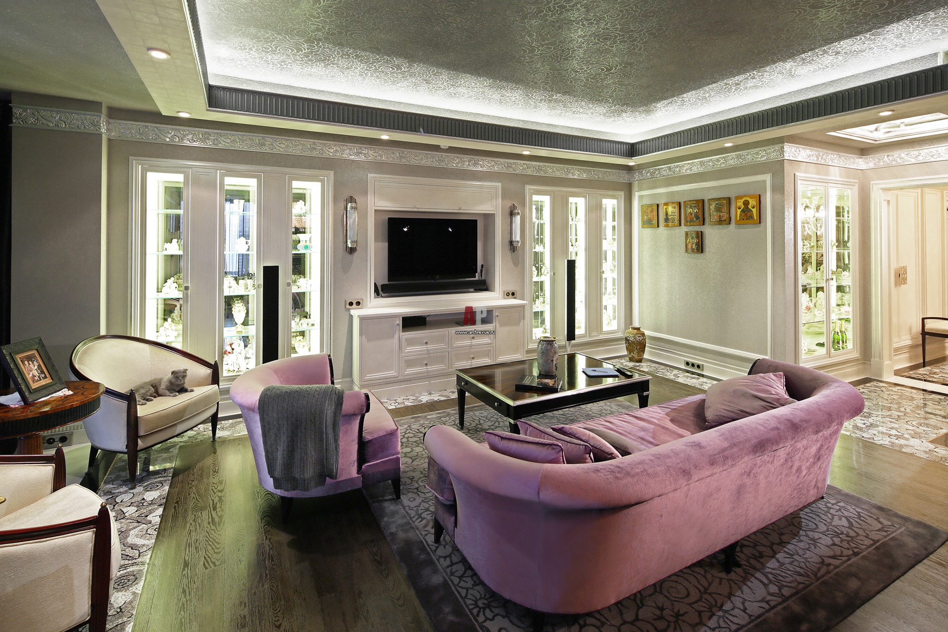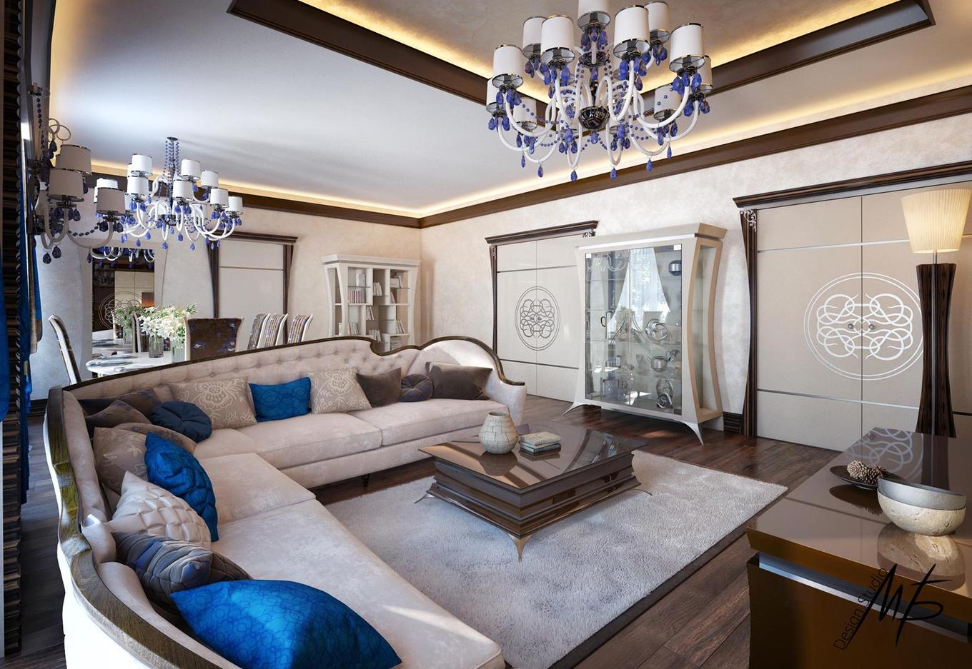 Bright living room in the style of Art Deco