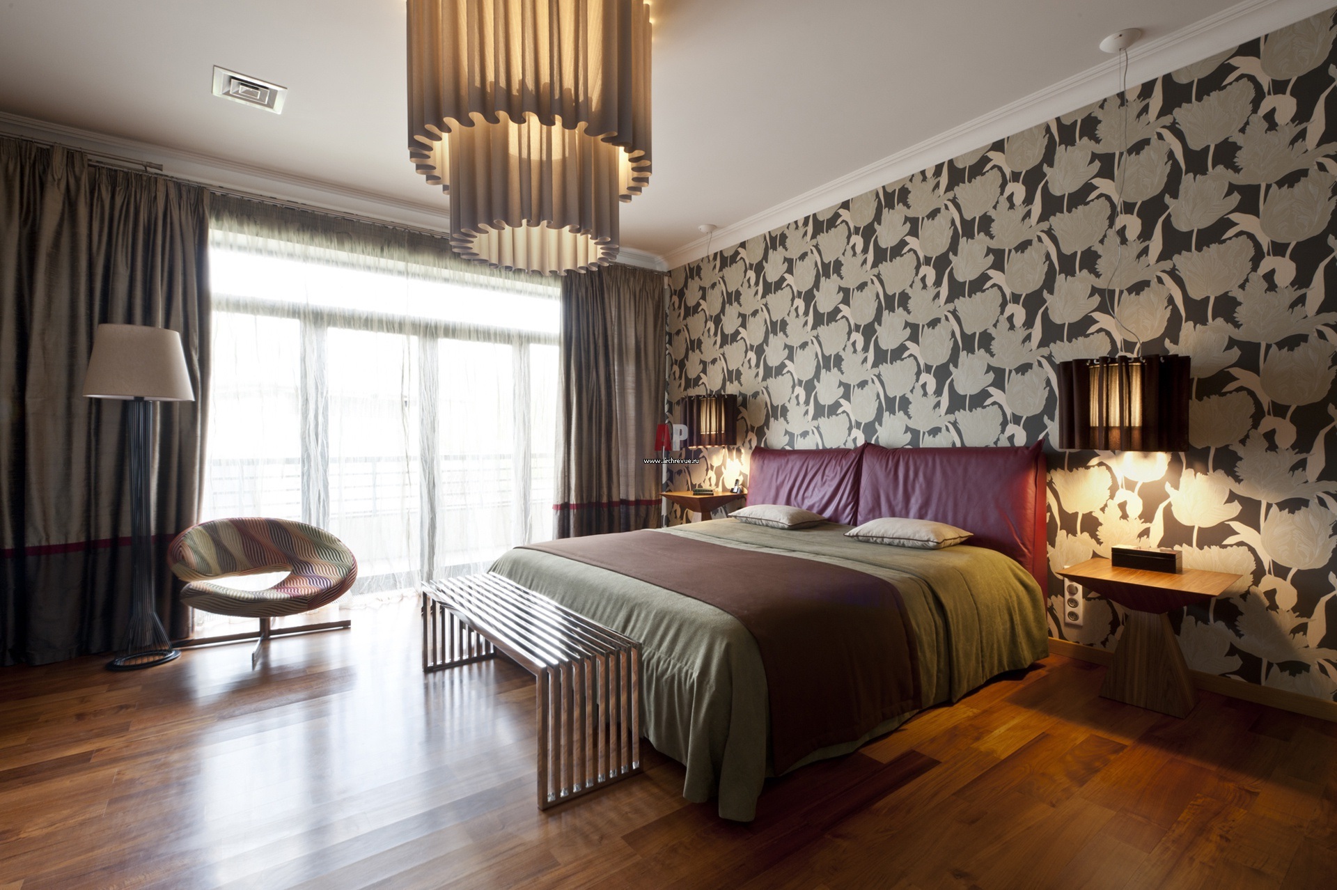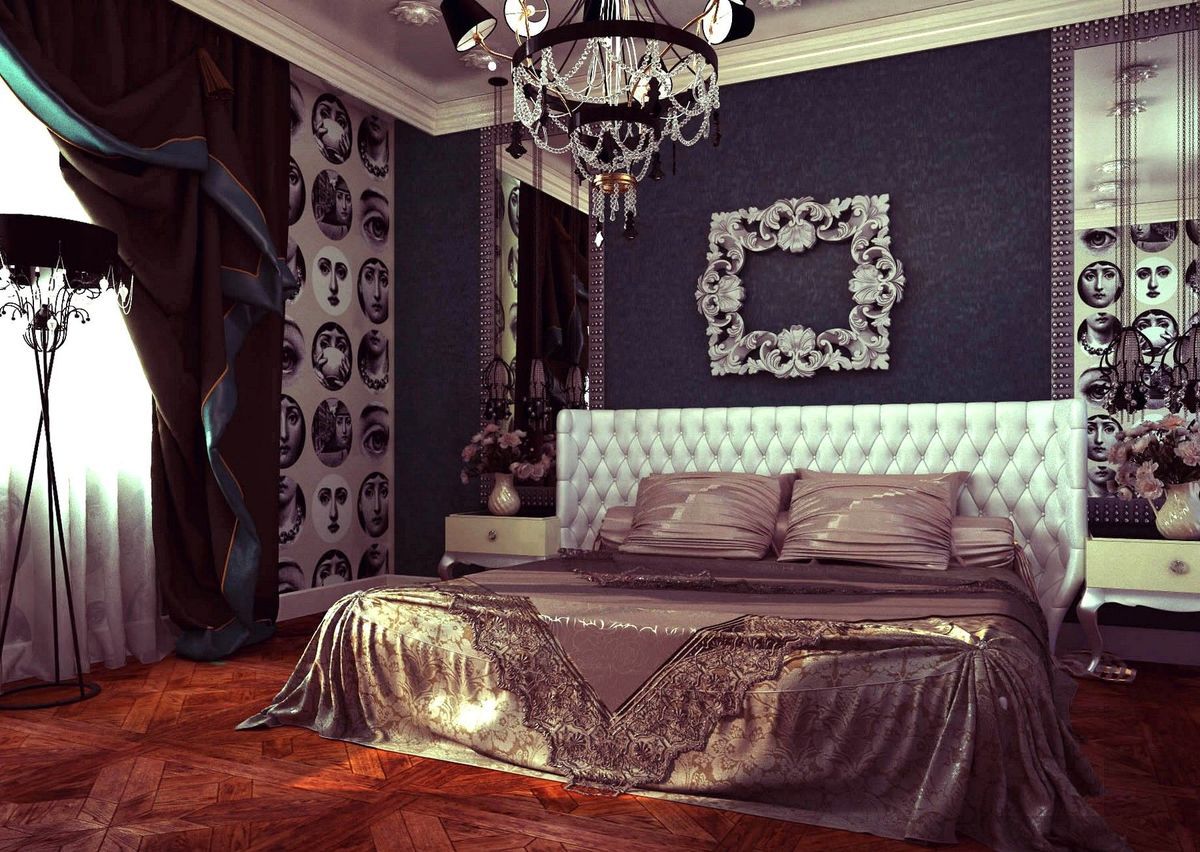 - In the design of bedrooms, art should be felt in everything, starting with the grace of a large bed and ending with paintings in the style of "nude" (nudes). Furniture without sharp corners, only streamlined. A real animal skin is welcomed on the floor by the bed.