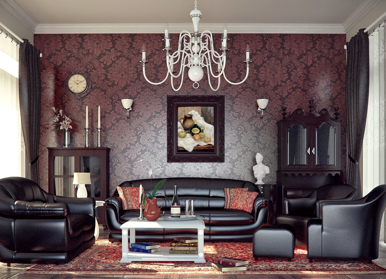The general surroundings can be complemented by modern handicrafts and explicit rarities of the Egyptian and ancient times (or imitation). Often, the interior uses frames and a dark background for bright things, like at expositions of exhibitions. An important role is given to musical instruments and the “principle of the piano” - the alternation of contrasts, like white and black keys.
