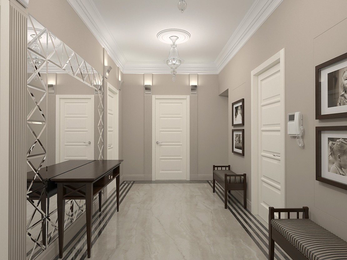 | Walls | To distract attention from the entrance (for example, shoes or a rug), it is necessary that the whiteness of the doors flow smoothly into the walls. The colors of both elements may vary in tone. |