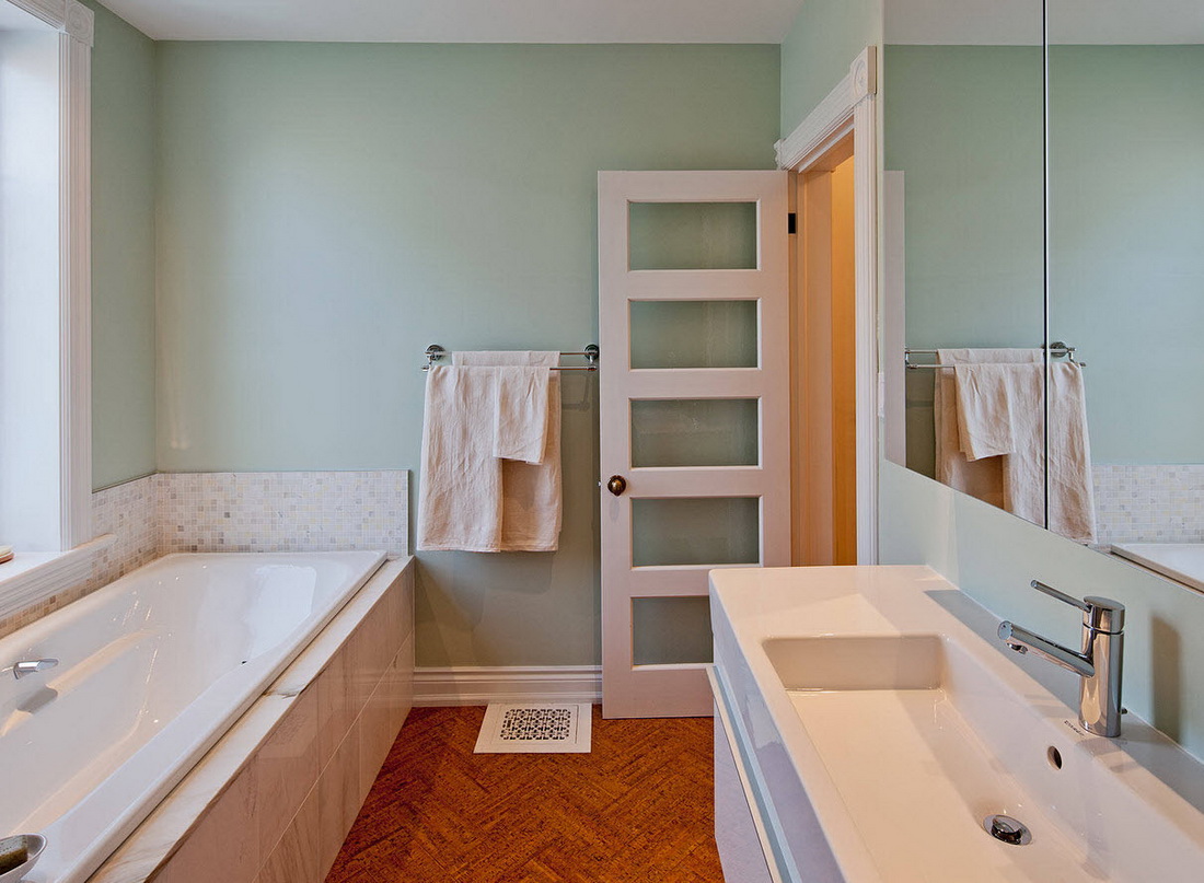 Designers use the most daring combinations of color and materials to create a unique home environment. White door leaf can be combined with other elements.