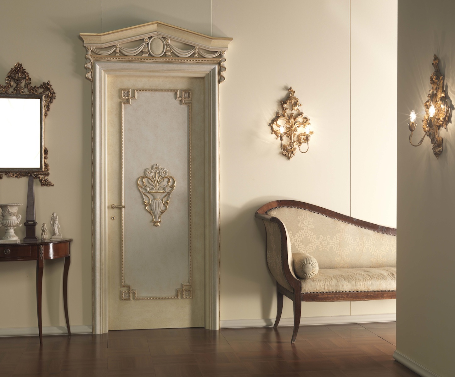- Modern styles of hi-tech, modern, neoclassic are characterized by shiny chrome details and many glass elements, so glossy light door leafs perfectly emphasize the ease and laconicism of the room.