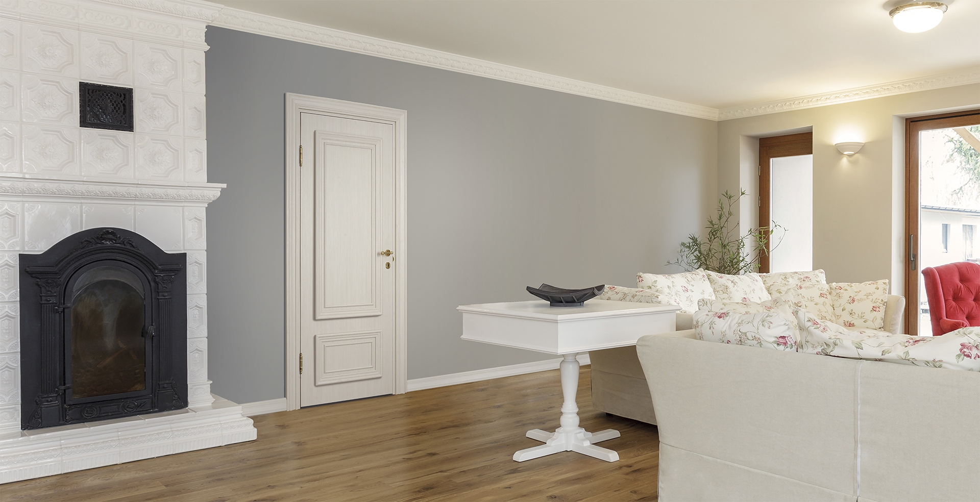 A good ratio of walls, flooring and ceiling with the appearance and color of the door helps to create coziness in the house. No matter how much designers argue among themselves about the good color combinations of a white door with other interior colors, the best “neighbors” for it are: