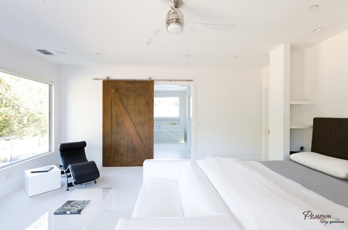 - visual expansion of space - white doors are invisible against the background of the same plain wall, this visually increases the area of the room.