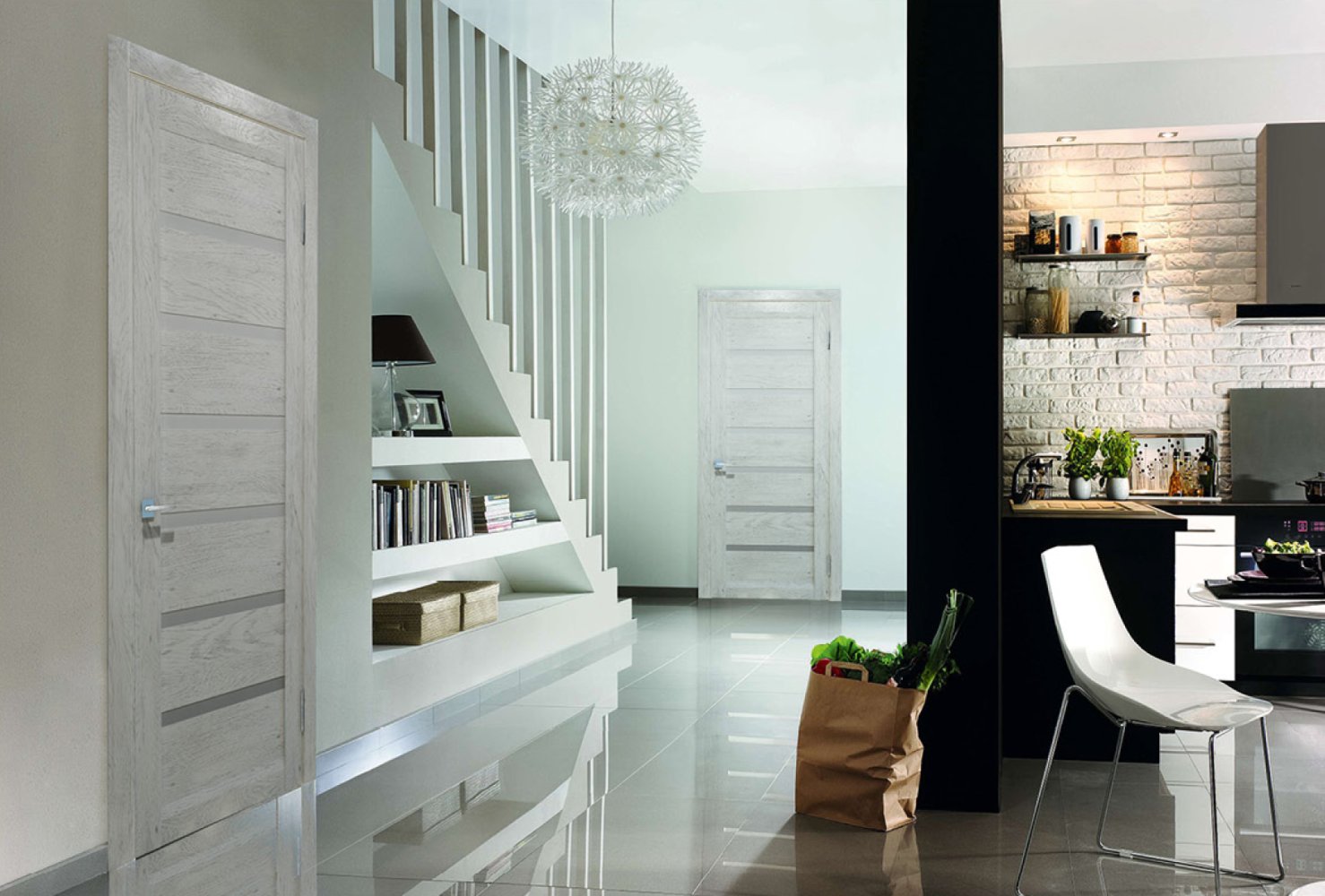 Room design with white doors