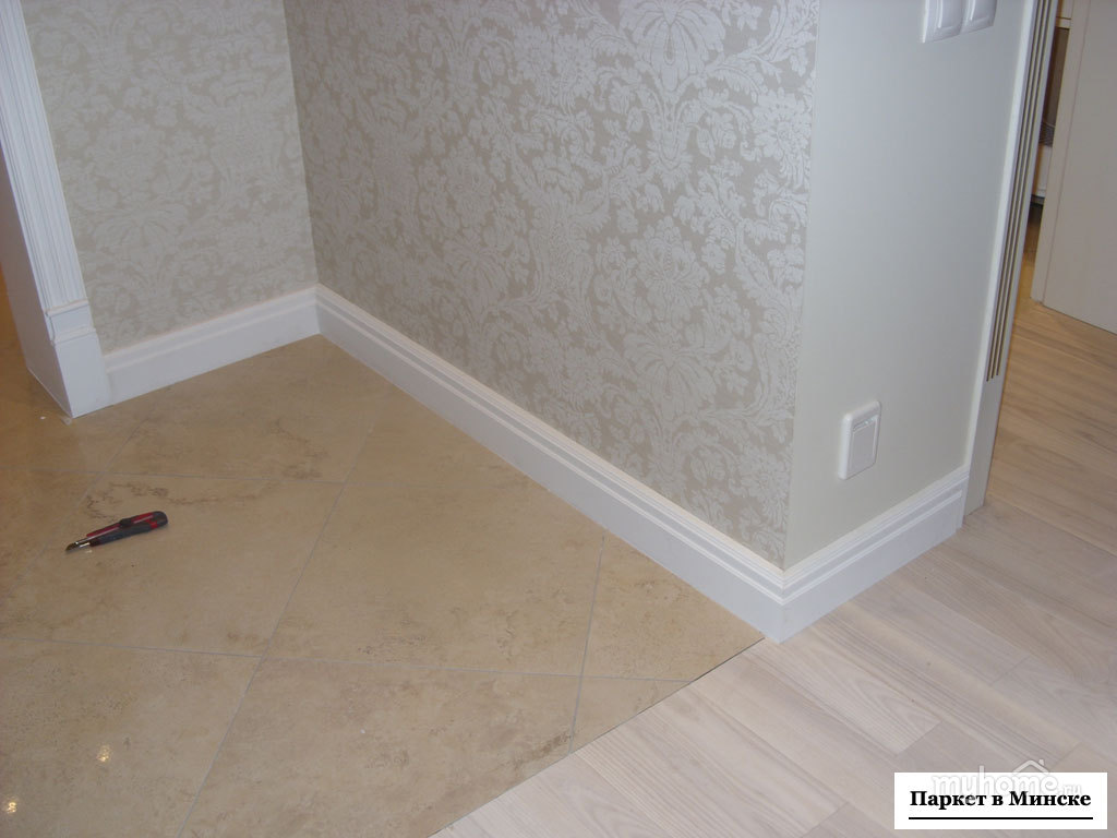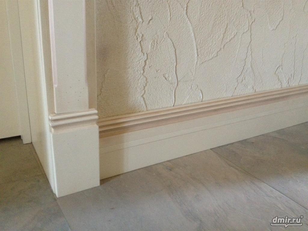 - Choose the material from which the white skirting board is made depending on the floor covering.