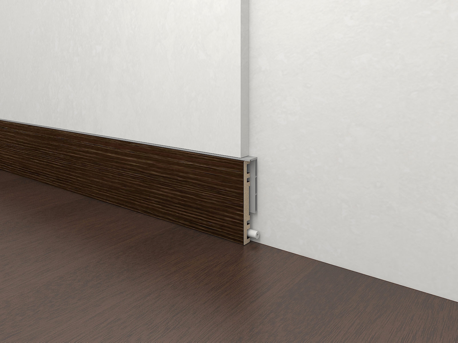 The floor profile has a height of 5 to 10 cm, the most popular is 6 cm. It allows you to close all joints and at the same time does not visually reduce the height of the walls. Wide 8-10 cm baseboards in the interior, as a rule, are made of plastic and used in large rooms with high ceilings. He gives grandeur. Its surface can be either smooth or decorated with protrusions, legs or patterns. The internal structure may include laying channels for wires and even for heating systems.