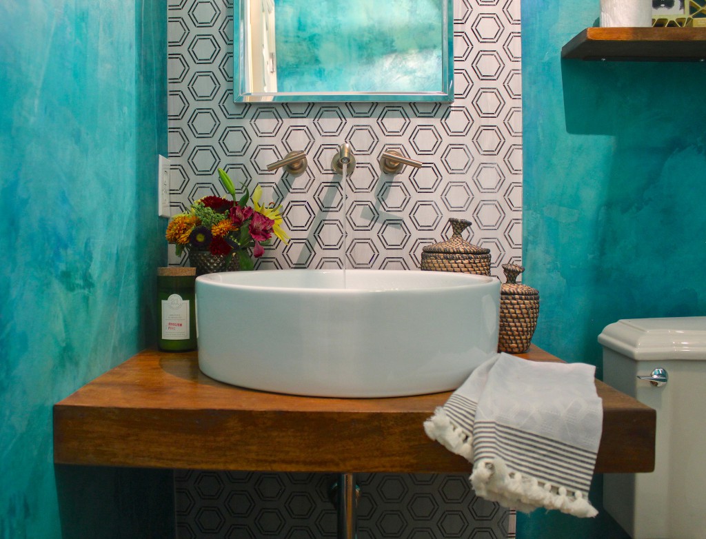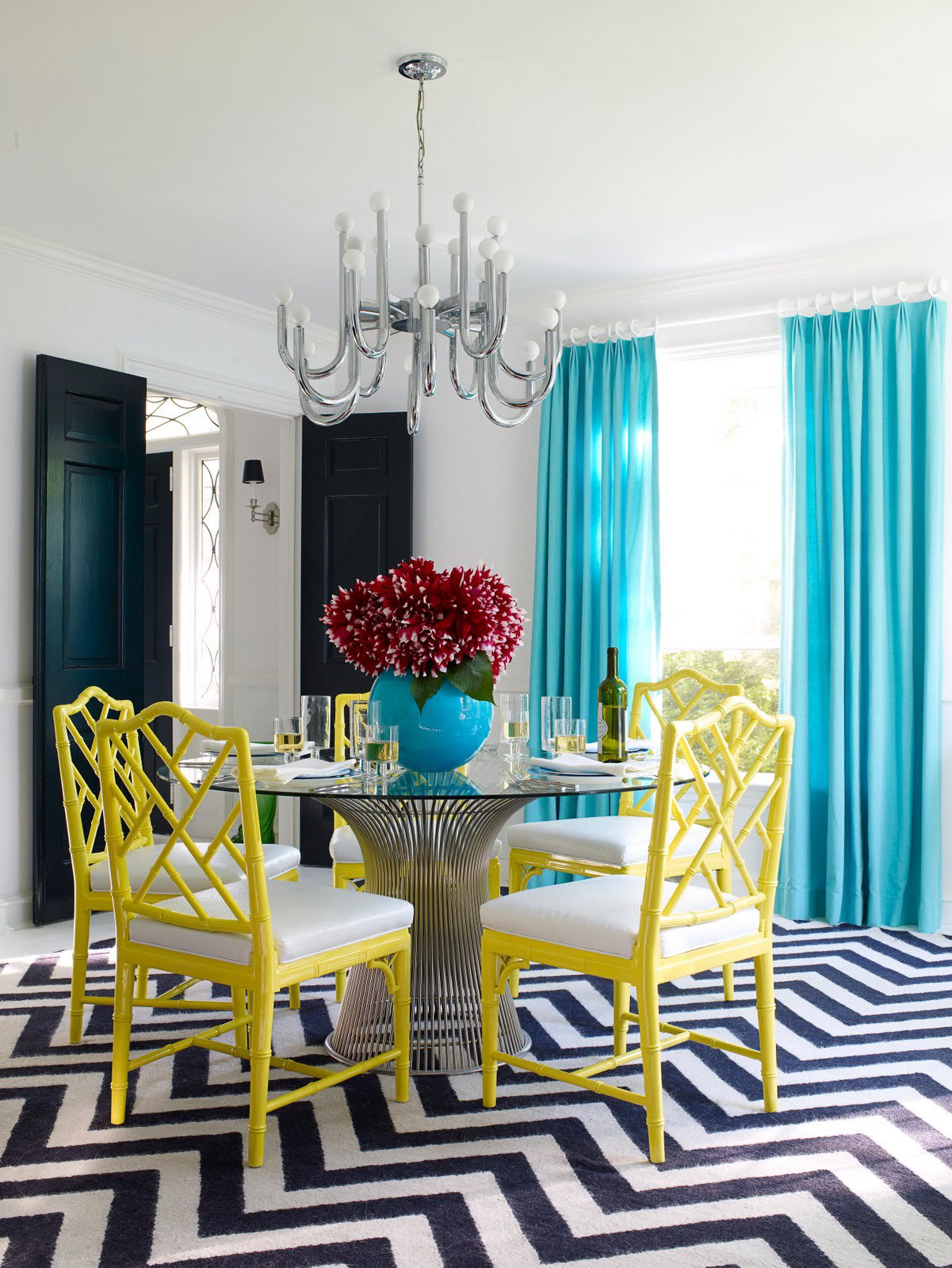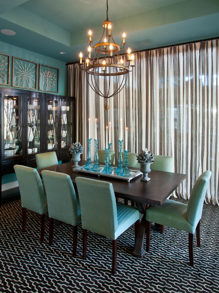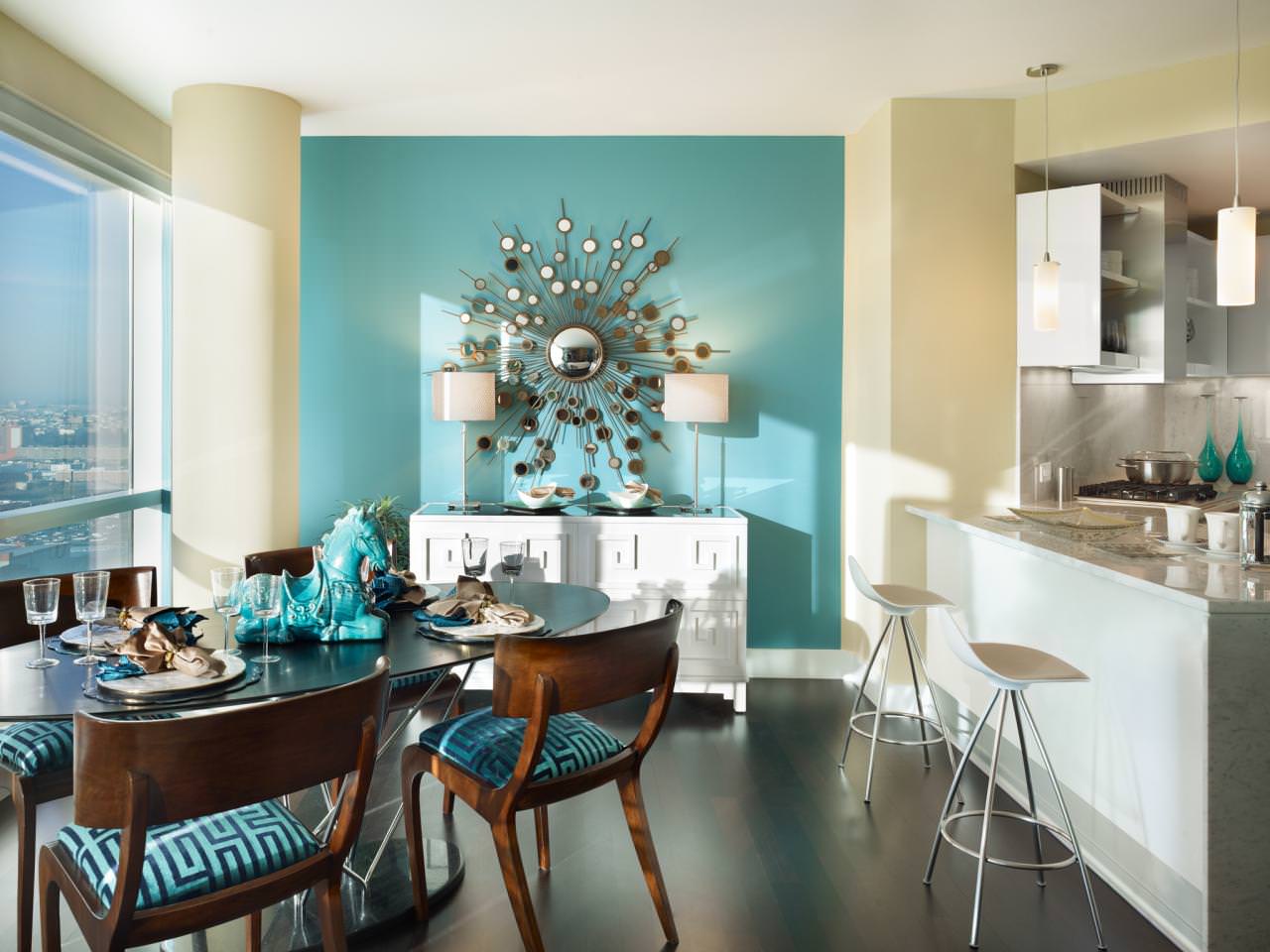 The turquoise color is capable of performing real miracles, absolutely changing its appearance depending on the colors adjacent to it.Its use is able to create decor in various styles, not at all similar to each other.