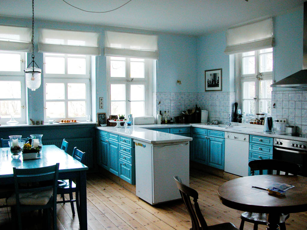 Individual objects can be very bright. A kitchen apron or aqua curtains will look amazing even in the most modest kitchen.
